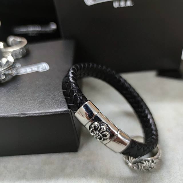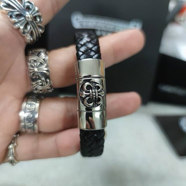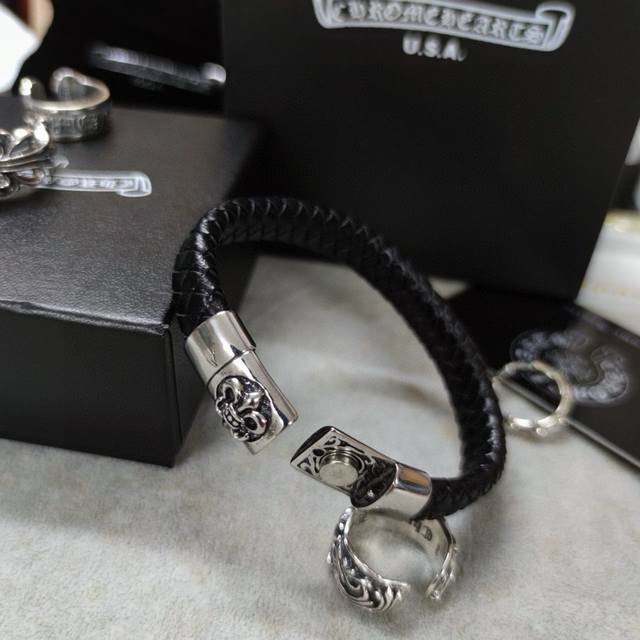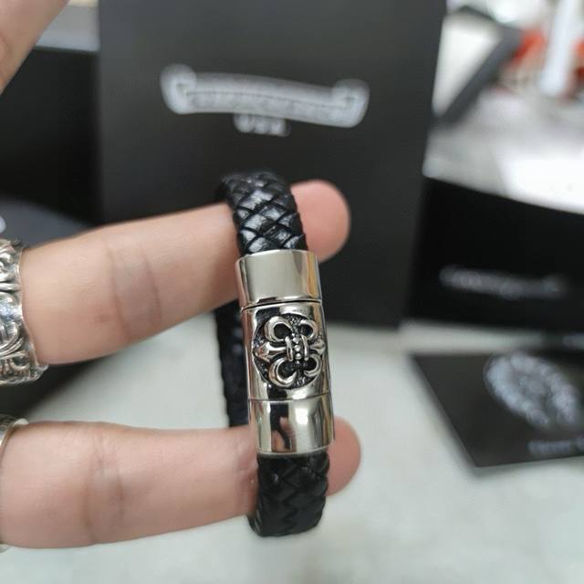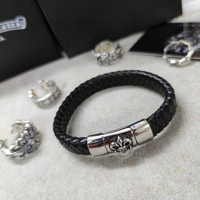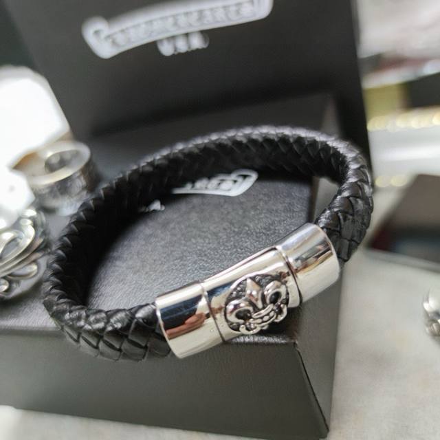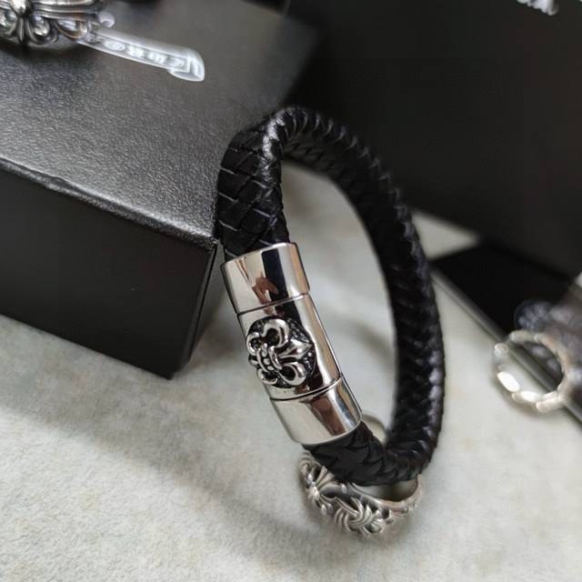 Chromehearts same style leather rope bracelet rock punk style retro elements tre