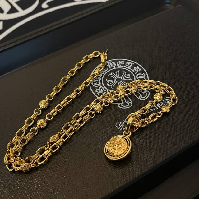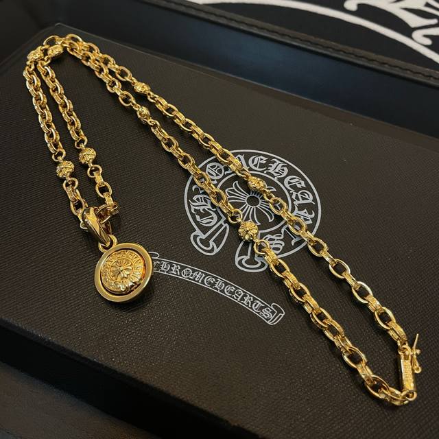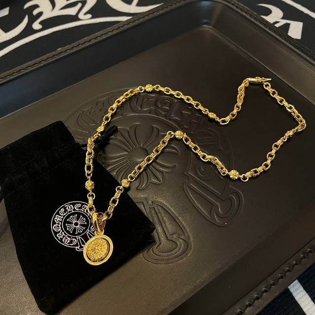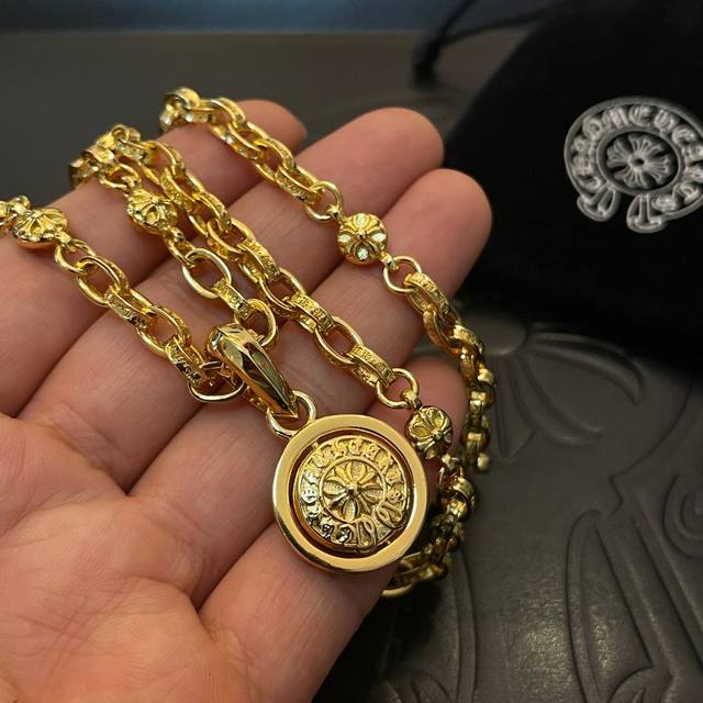 Counter quality Chrome Hearts classic gold cross flower ball necklace, horseshoe print pendant with concave and convex shapes and different patterns and design styles presents a unique look. The cross and scout flower are the symbol of Chrome Hearts, so it is more enduring. Authentic Chrome Hearts is different from ordinary light versions on the market. The quality is compared with the version. Look at the printing details, retro and old-fashioned gray and oxygen levels. Seiko version!!! Purely handmade ~ Authentic mold opening, trendy and fashionable, must-have for men and women, can be worn by couples, original official website rock punk Thai silver style, retro elements, trendy and versatile!