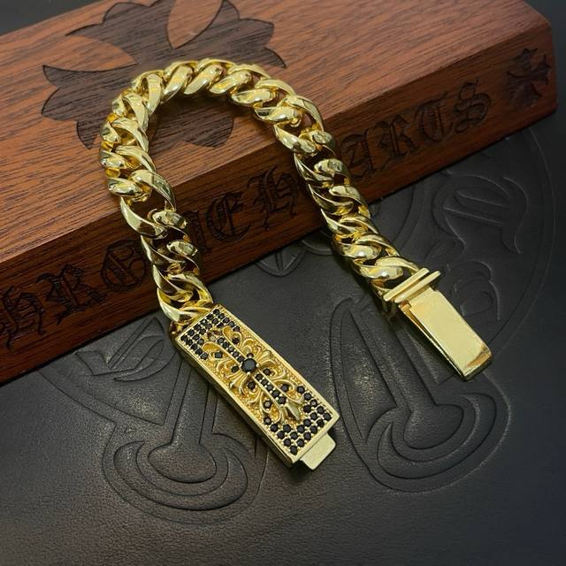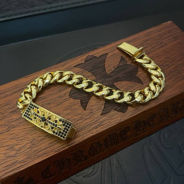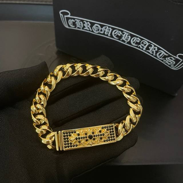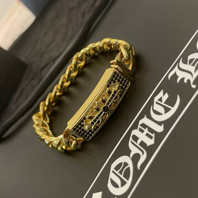 Counter quality Chrome Hearts gold classic twisted polished cross flower black diamond bracelet, the concave and convex shapes and different pattern design styles present a unique cross. The Scout Flower is the symbol of Chrome Hearts, so it is more enduring. The genuine version of Chrome Hearts necklace is different from the ordinary light version on the market. The quality is compared with the version. Look at the printing details for retro and old-fashioned gray and oxygen levels. Seiko version!!! Purely handmade ~ authentic mold opening, trendy and fashionable, a must-have for men and women, can be worn by couples, the official website original rock punk Thai silver style, retro elements, trendy and versatile!