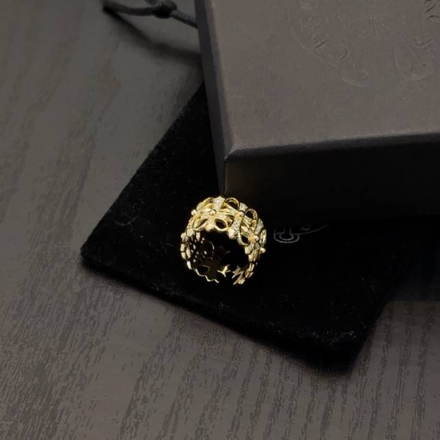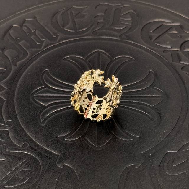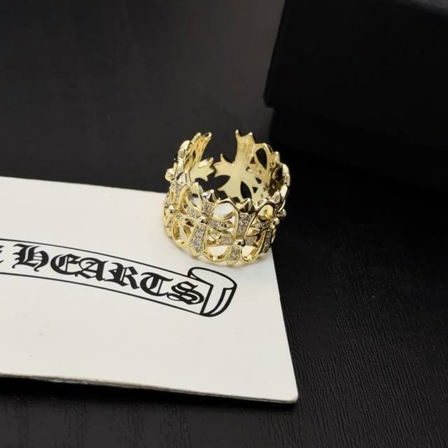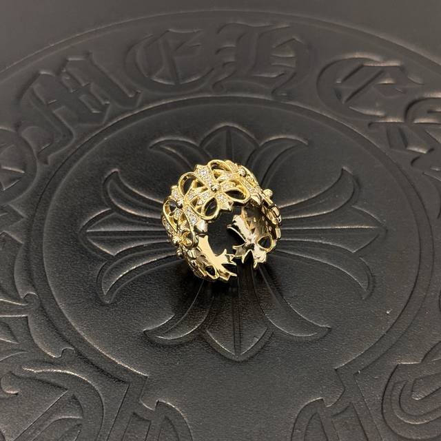 Counter quality Chrome Hearts gold full diamond cross flower ring with concave and convex shapes and different patterns and design styles, showing a unique style. The cross Scout flower is the symbol of Chrome Hearts, so it is more timeless. The genuine Chrome Hearts necklace is different from the ordinary light version on the market. The quality is compared with the version. Look at the printing details for retro and antique gray and oxygen levels. Seiko version!