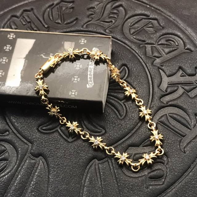 / High-quality Chrome Hearts 22K diamond-encrusted cross flower bracelet. Sizes: 1