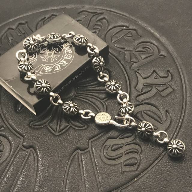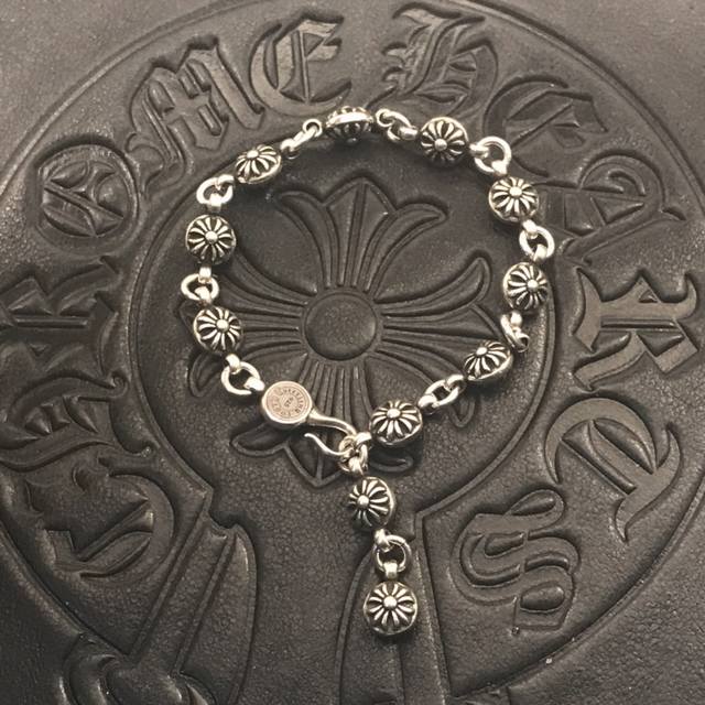 High-quality Chrome Hearts cross and flower ball bracelet, original horseshoe clasp, excellent details, clear engraving, sizes 17-23 available. Item No.: Cs007