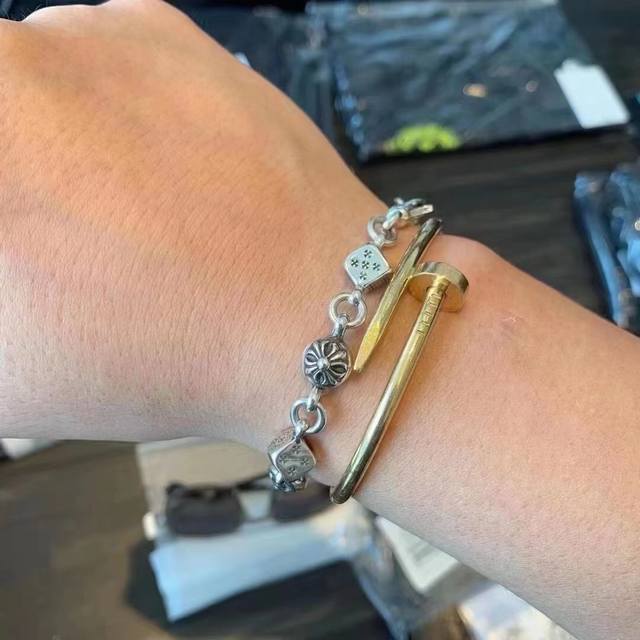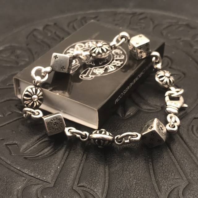 High-quality Chrome Hearts dice bracelet (out of stock), meticulous details, clear engraving, all dice positions are identical, original lobster clasp, the connecting ring is relatively thick, unlike the thin rings used on the market which look out of place. Suitable for both men and women. Sizes 18, 20, 22cm. Item No.: Cs003