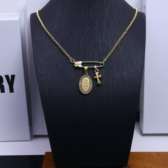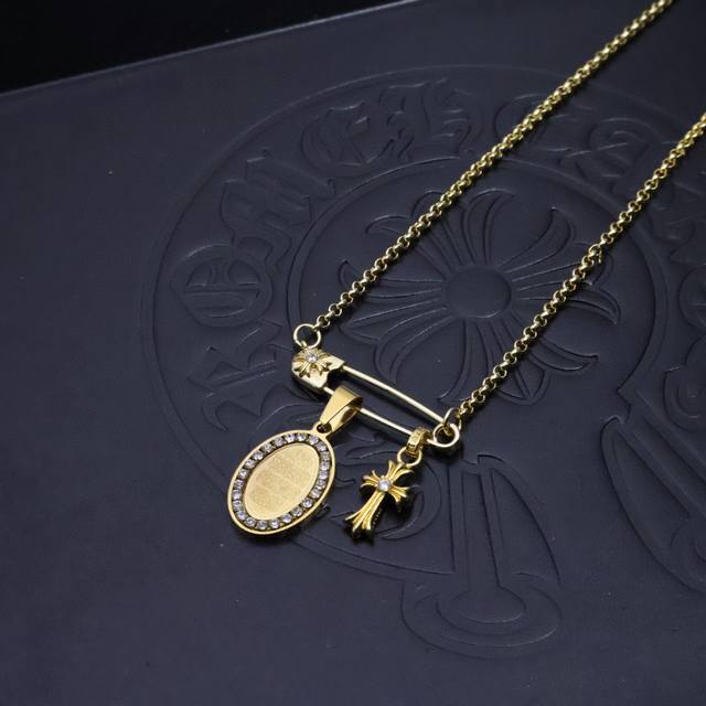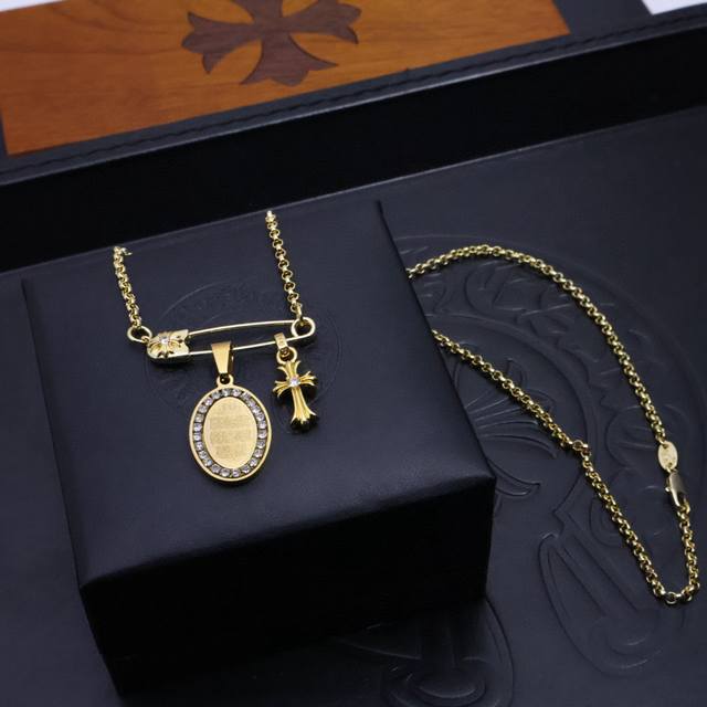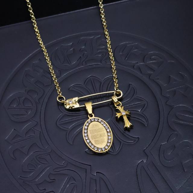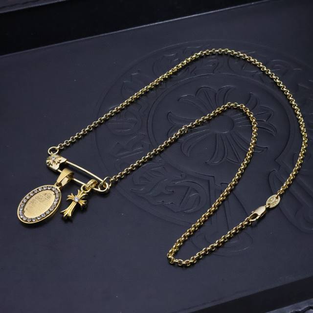 New Arrival Chrome Hearts 22K Gold Necklace. For those seeking a unique style, the Chrome Hearts 22K gold paperclip choker chain with diamond brooch and couple's bamboo chain necklace is the perfect choice. Its unique design will make you stand out in any occasion. A trendy and fashionable must-have for both men and women. Matching couple styles available. Factory direct sales.