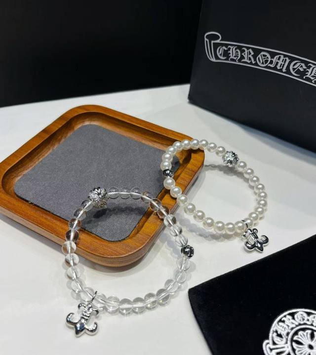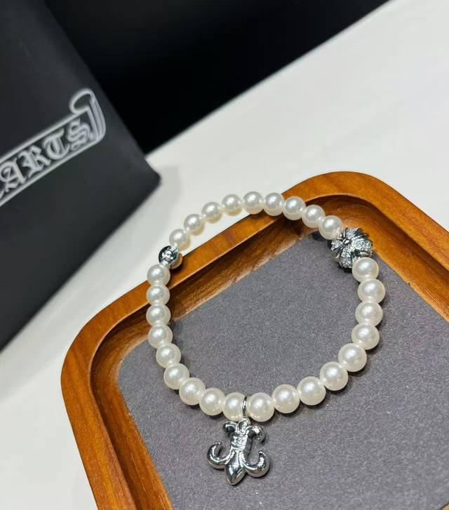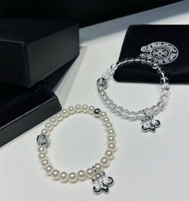 New arrival Chrome Hearts trendy must-have item Chrome Hearts crystal cross pearl bracelet is so beautiful. Wearing it will blow up the whole street [snickering] Chrome Hearts bracelet