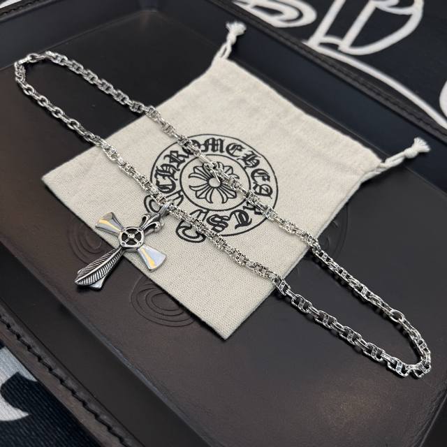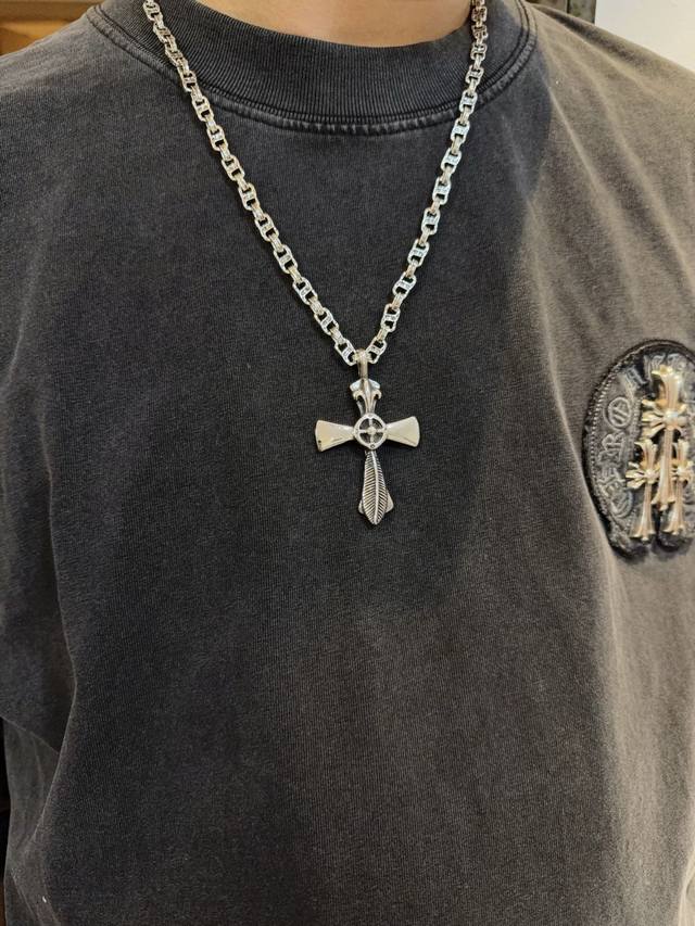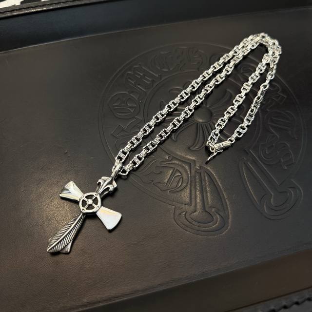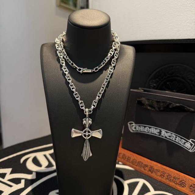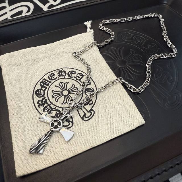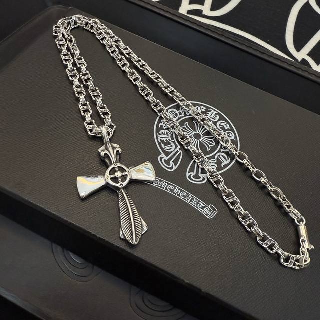 New Arrival, Counter Quality Chrome Hearts Classic Retro Letter Necklace With Cross And Feather Pendant. The Unique Textured Design Features Different Patterns, Creating A Distinctive Style. The Cross And Scout Flower Symbolize Chrome Hearts' Spirit, Making It Timeless. Authentic Chrome Hearts Replica, Distinguished From Ordinary Lightweight Versions On The Market. Matching Quality, Pay Attention To The Details Of The Engraved Text. Retro-Aged Gray Finish. Premium Craftsmanship!!! Handcrafted ~ Authentic Molded Design, A Must-Have For Trendy Fashion. Suitable For Both Men And Women, Couple's Matching Styles. Official Website Original Version. Rock