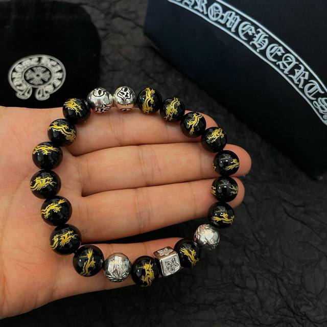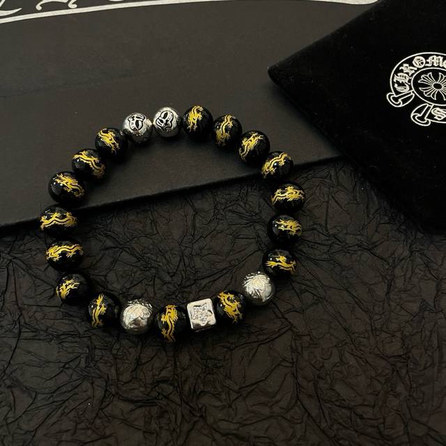 New batch of high-quality Chrome Hearts classic retro multi-element obsidian dragon pattern bracelets. The different textured designs create a unique style. The cross and scout flower are Chrome Hearts' signature elements, making them timeless. Authentic Chrome Hearts replicas, distinguishing them from ordinary market versions. Quality is guaranteed; look at the details of the lettering and the vintage, distressed finish. Exquisite craftsmanship! Handmade! Authentic mold, trendy and fashionable, suitable for both men and women, couples, official website original, rock punk Thai silver style, retro elements, trendy and versatile!