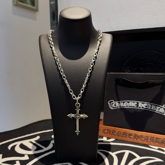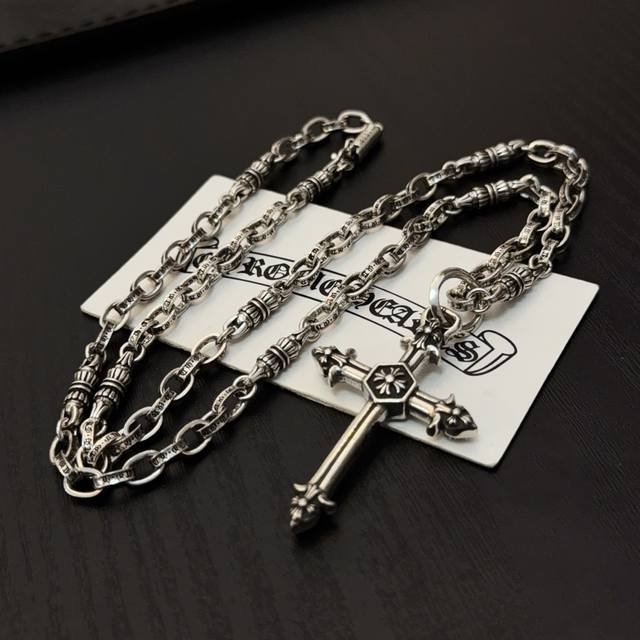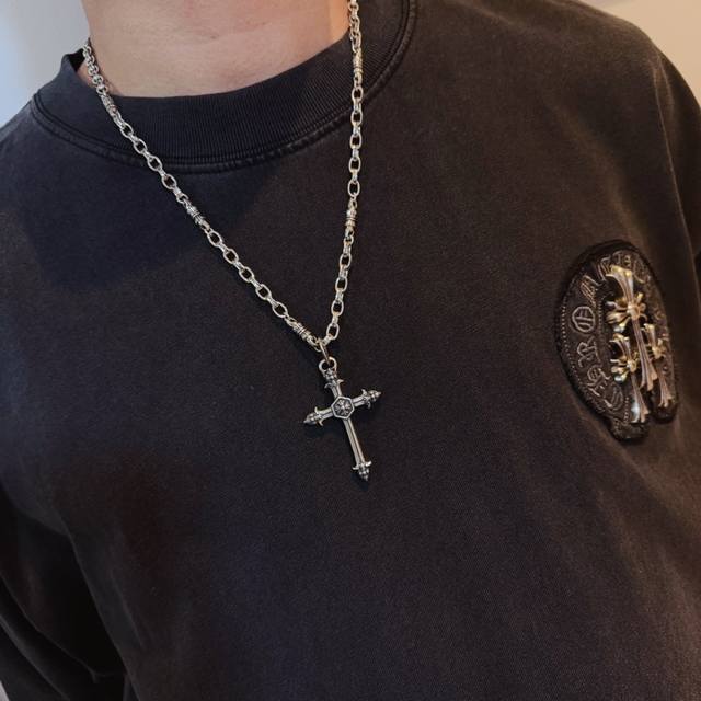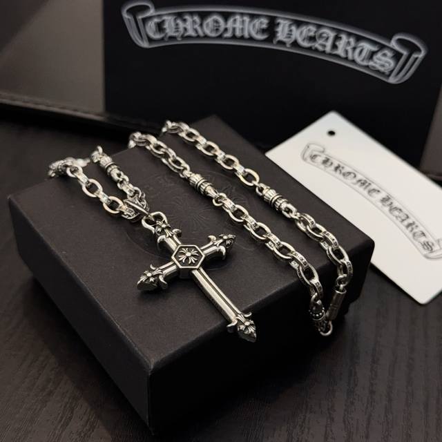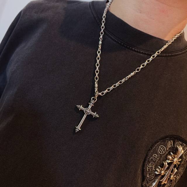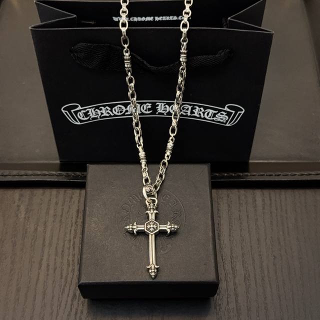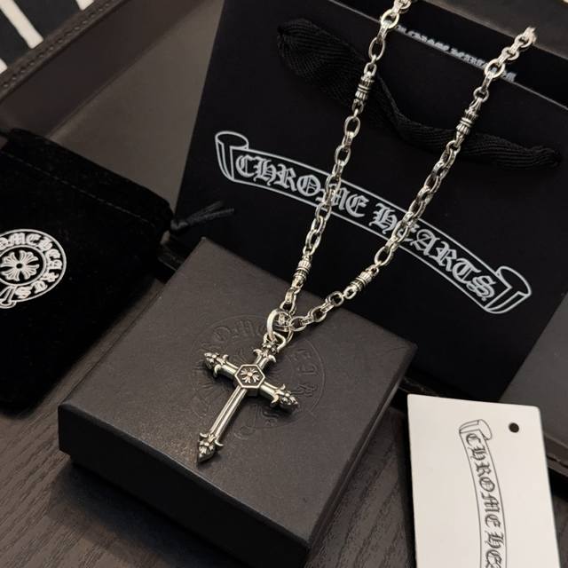 New boutique quality Chrome Hearts classic necklace with cross pendant. The embossed design and different patterns create a unique look. The cross and scout flower are Chrome Hearts' signature elements, making it timeless. Authentic Chrome Hearts replica, different from ordinary versions on the market. High-quality replica, check the details of the lettering and the vintage distressed finish. Exquisite craftsmanship! Handmade! Authentic mold, trendy and fashionable, suitable for both men and women, couples, official website original, rock punk Thai silver style, retro elements, trendy and versatile!