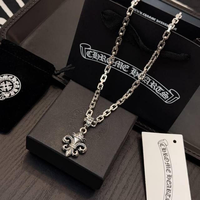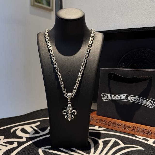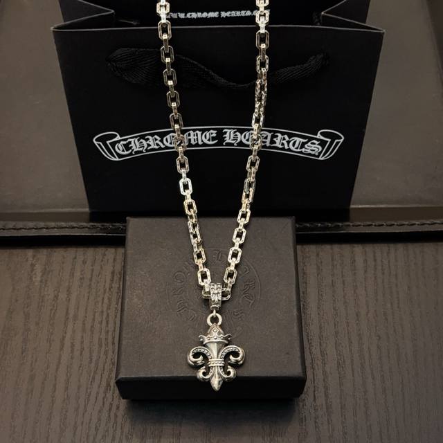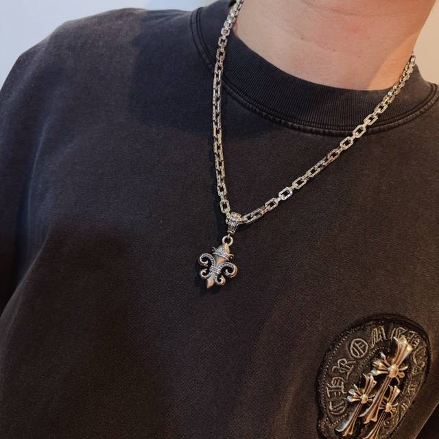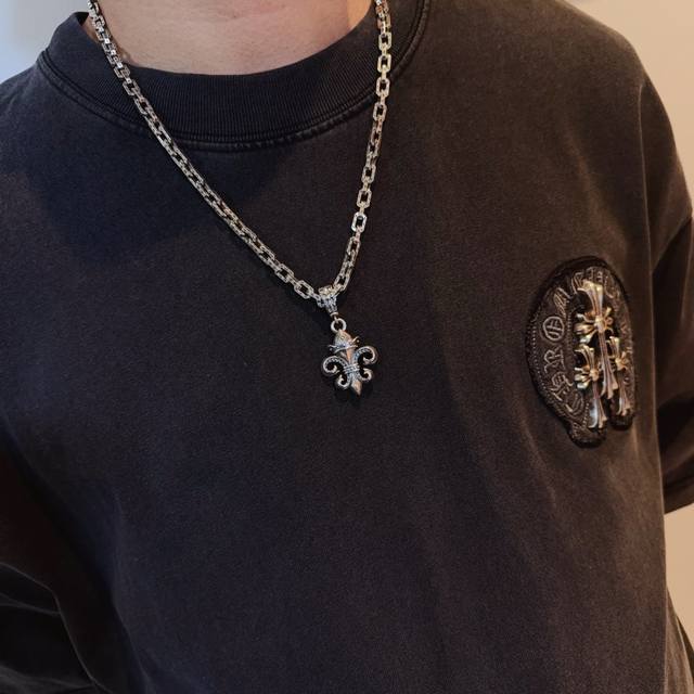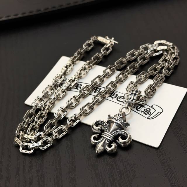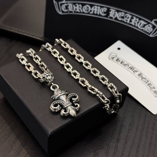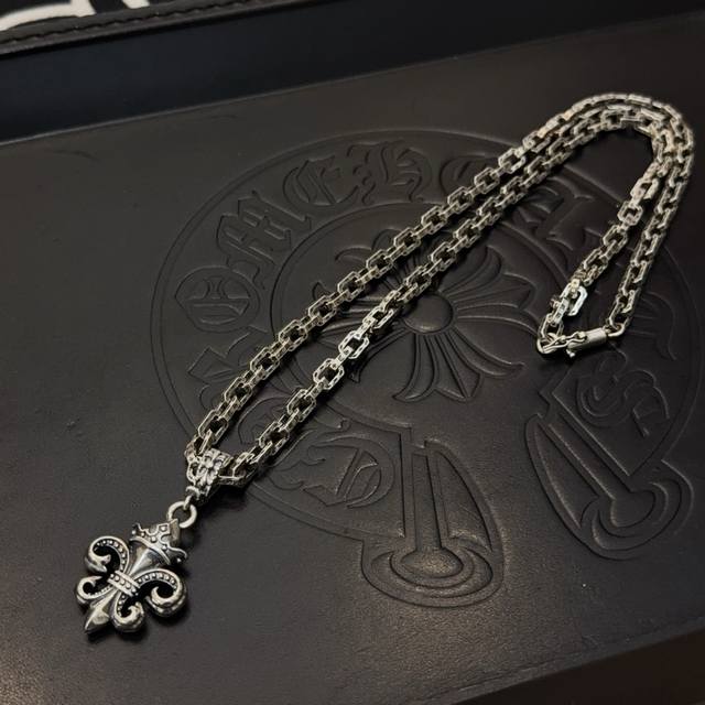 New boutique quality Chrome Hearts classic necklace with scout flower pendant. The embossed design and different patterns create a unique look. The cross and scout flower are the symbol of Chrome Hearts, making them timeless. Authentic Chrome Hearts replica, different from ordinary versions on the market. High-quality replica, look at the details of the lettering and the vintage distressed finish. Exquisite craftsmanship! Purely handmade. Authentic mold, trendy and fashionable, a must-have for men and women, suitable for couples. Official website original, rock punk Thai silver style, retro elements, trendy and versatile!