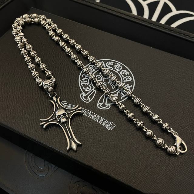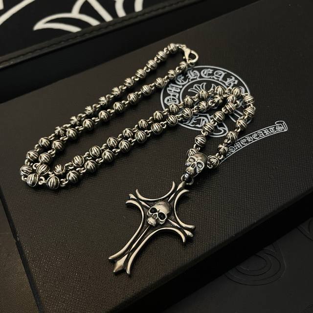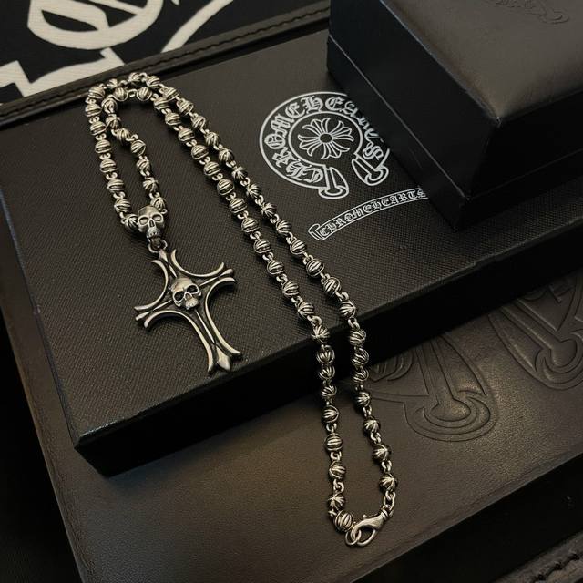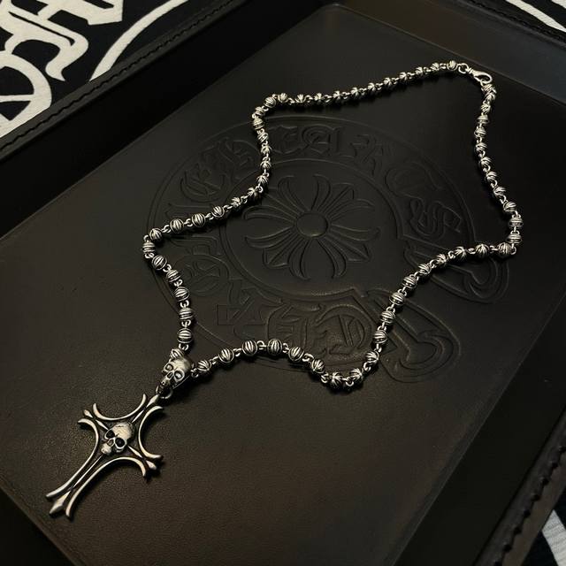 New boutique quality Chrome Hearts classic retro beaded letter necklace with cross and skull pendant. The embossed design and different patterns create a unique look. The cross and scout flower are Chrome Hearts' signature colors, making them timeless. Authentic Chrome Hearts replica, different from ordinary versions on the market. High-quality replica, look at the details of the lettering, the vintage distressed finish, and the degree of gray oxide. Exquisite craftsmanship! Purely handmade