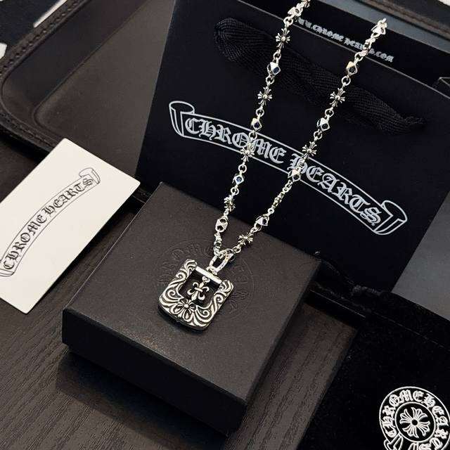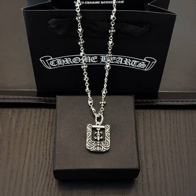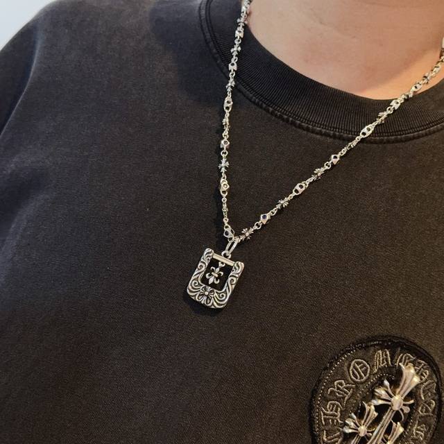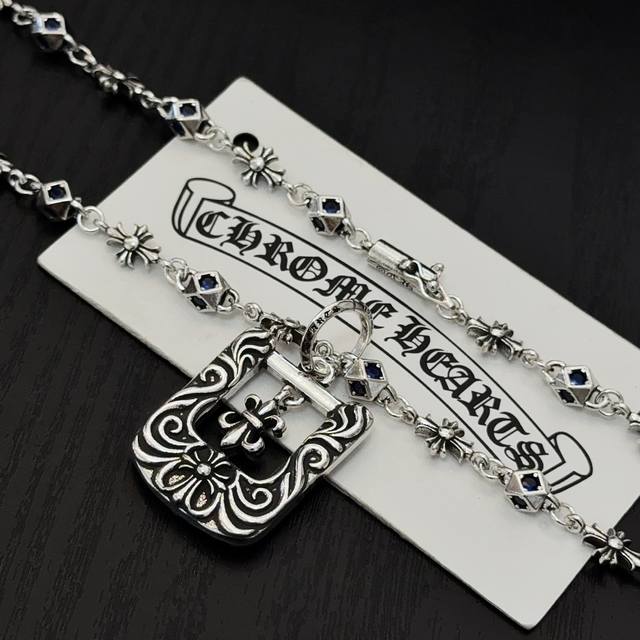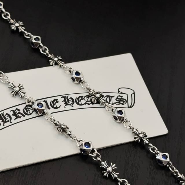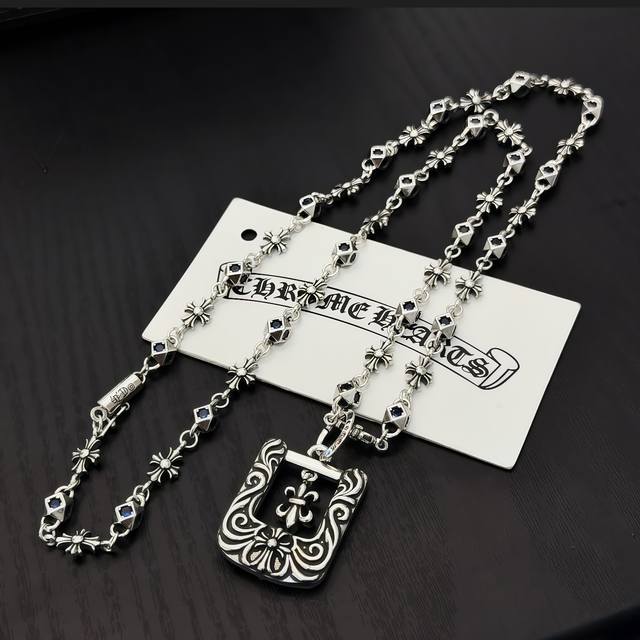 New boutique quality Chrome Hearts classic retro blue diamond cross necklace with square scout flower pendant. The embossed design and different patterns create a unique look. The cross and scout flower are Chrome Hearts' signature colors, making them timeless. Authentic Chrome Hearts replica, different from ordinary versions on the market. High-quality replica, check the details of the lettering and the vintage distressed finish. Exquisite craftsmanship! Handmade! Authentic mold, trendy and fashionable, a must-have for men and women, suitable for couples. Official website original, rock punk Thai silver style, retro elements, trendy and versatile!