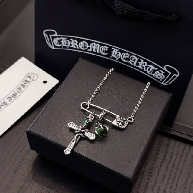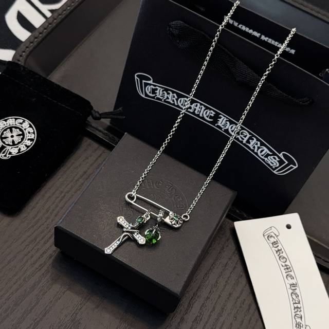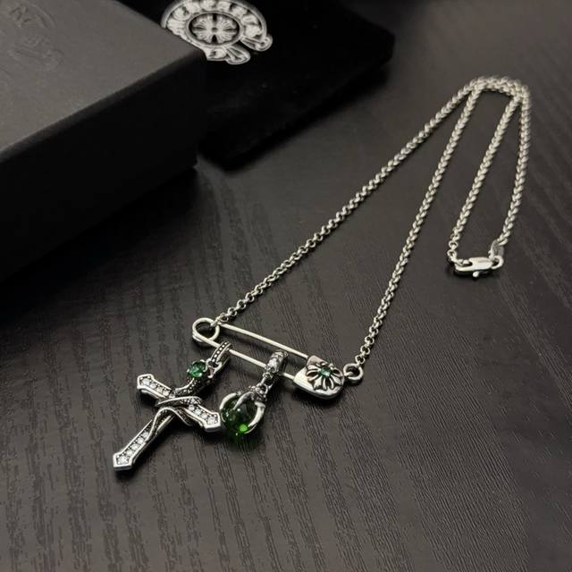 New boutique quality Chrome Hearts classic retro brooch cross necklace. The embo