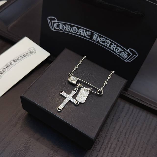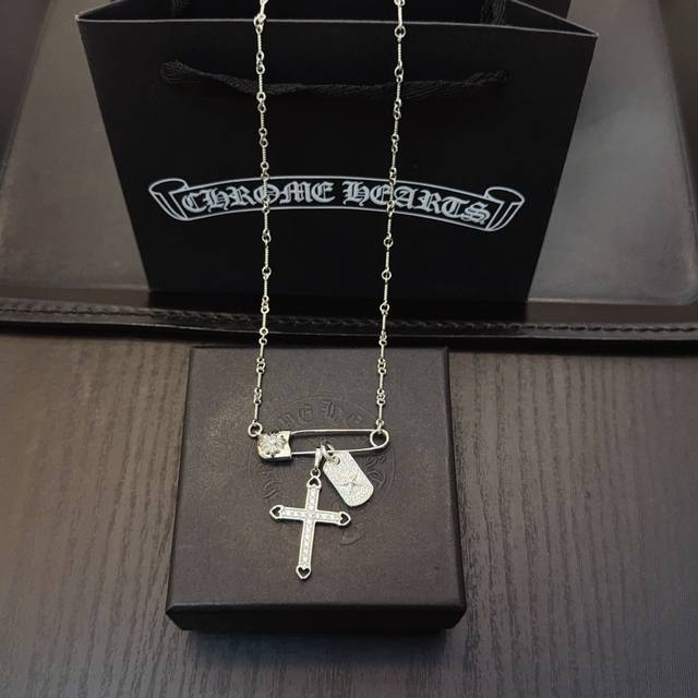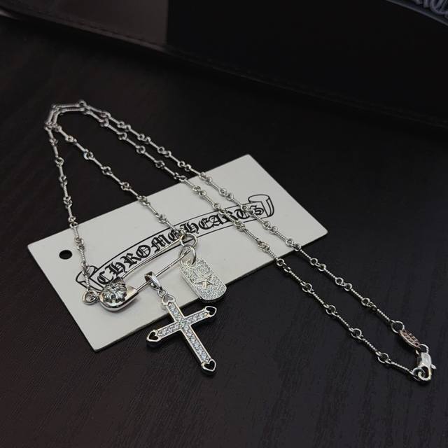 New boutique quality Chrome Hearts classic retro brooch necklace. The embossed design and different patterns create a unique look. The cross and scout flower are Chrome Hearts' signature elements, making them timeless. Authentic Chrome Hearts replica, different from ordinary versions on the market. High-quality replica, check the details of the lettering and the vintage distressed finish. Exquisite craftsmanship! Handmade! Authentic mold, trendy and fashionable, a must-have for men and women, suitable for couples. Official website original, rock punk Thai silver style, retro elements, trendy and versatile!