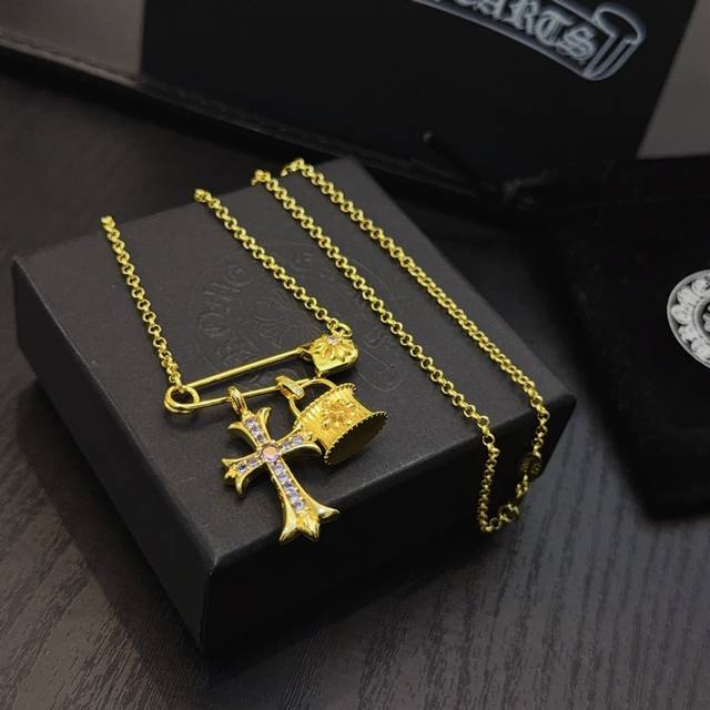 New boutique quality Chrome Hearts classic retro brooch necklace. The embossed design and different patterns create a unique look. The cross and scout flower are Chrome Hearts' signature elements, making it timeless. Authentic Chrome Hearts replica, different from ordinary versions on the market. Quality is top-notch, look at the details of the lettering and the vintage distressed finish. Exquisite craftsmanship! Purely handmade