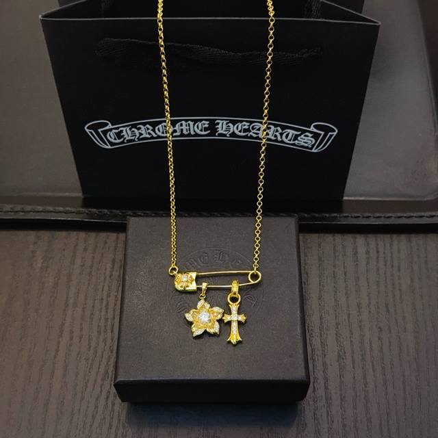New boutique quality Chrome Hearts classic retro brooch necklace. The embossed design and different patterns create a unique look. The cross and scout flower are Chrome Hearts' signature elements, making them timeless. Authentic Chrome Hearts replica, different from ordinary versions on the market. Quality is top-notch, look at the details of the lettering and the vintage distressed finish. Exquisite craftsmanship! Handmade! Authentic mold, trendy and fashionable, a must-have for men and women, suitable for couples. Official website original, rock punk Thai silver style, retro elements, trendy and versatile! DDD
