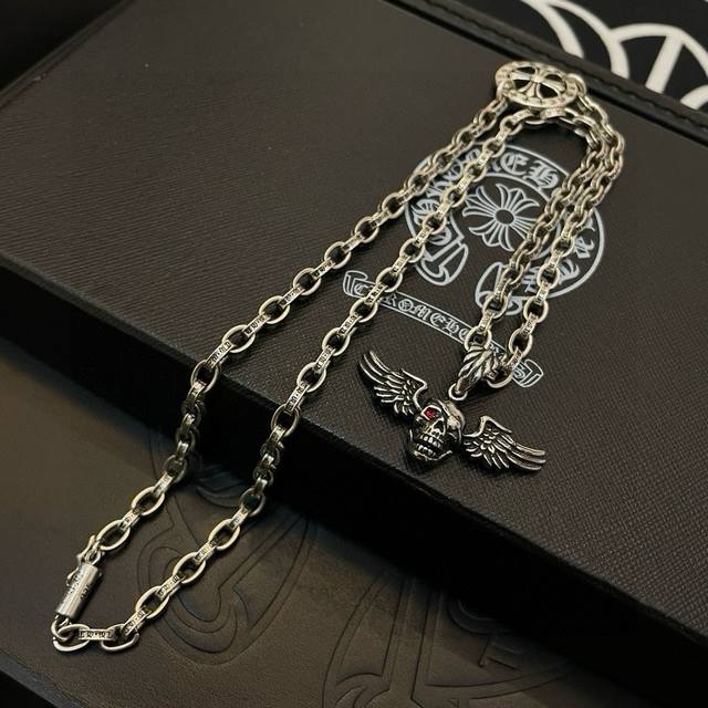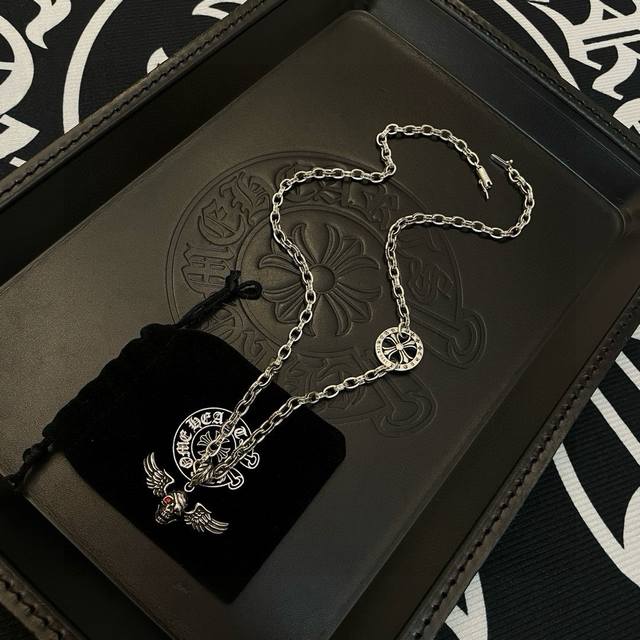 New boutique quality Chrome Hearts classic retro cross circle letter necklace with dragon head pendant. The embossed design and different patterns create a unique look. The cross and scout flower are Chrome Hearts' signature elements, making them timeless. Authentic Chrome Hearts replica, different from ordinary versions on the market. High-quality replica with detailed lettering and vintage finish. Exquisite craftsmanship! Handmade! Authentic mold, trendy and fashionable, suitable for both men and women, couples. Official website original, rock punk Thai silver style, retro elements, trendy and versatile!