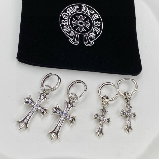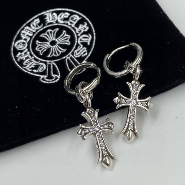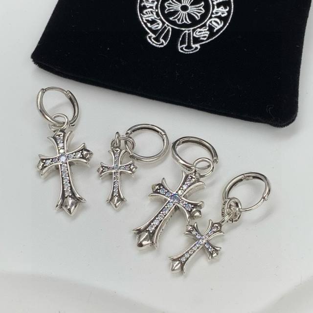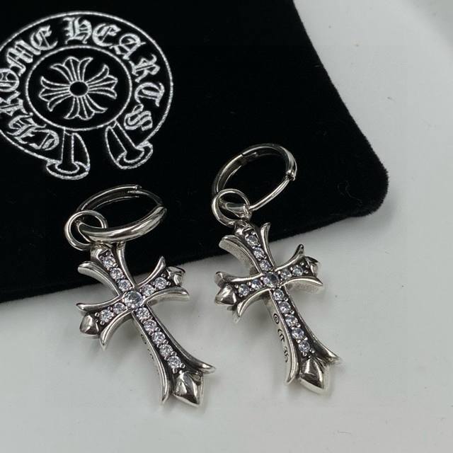 New boutique quality Chrome Hearts classic retro cross diamond stud earrings. The embossed design and different patterns create a unique look. The cross and scout emblem are Chrome Hearts' signature, making them timeless. Authentic Chrome Hearts replicas, different from ordinary versions on the market. High-quality replicas, look at the details of the lettering and the vintage distressed finish. Exquisite craftsmanship! Handmade! Authentic mold, trendy and fashionable, a must-have for men and women, suitable for couples. Official website original, rock punk Thai silver style, retro elements, trendy and versatile!