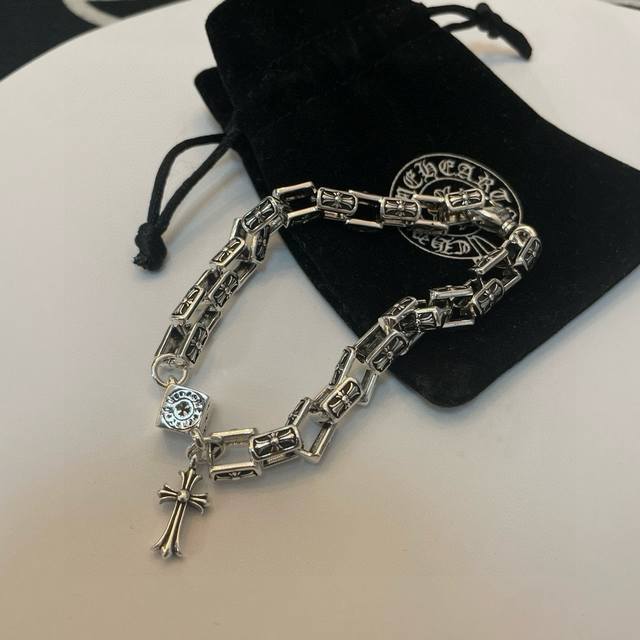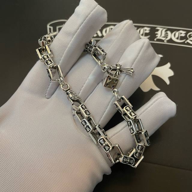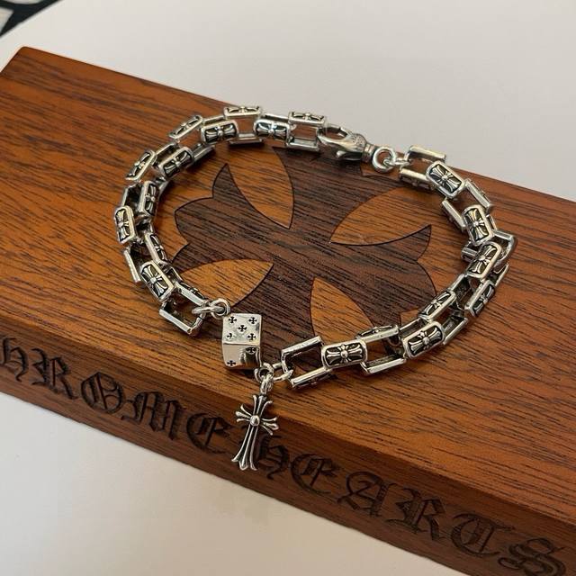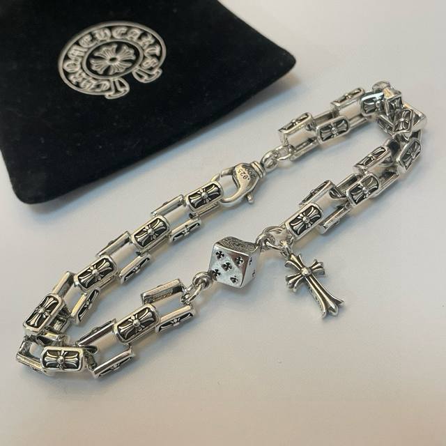 New boutique quality Chrome Hearts classic retro cross dice bracelet. The embossed design and different patterns create a unique look. The cross and scout flower are Chrome Hearts' signature elements, making it timeless. Authentic Chrome Hearts replica, different from ordinary versions on the market. High-quality replica, look at the details of the lettering and the vintage distressed finish. Exquisite craftsmanship! Handmade! Authentic mold, trendy and fashionable, a must-have for men and women, suitable for couples. Official website original, rock punk Thai silver style, retro elements, trendy and versatile!