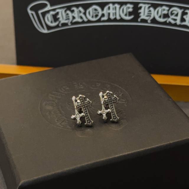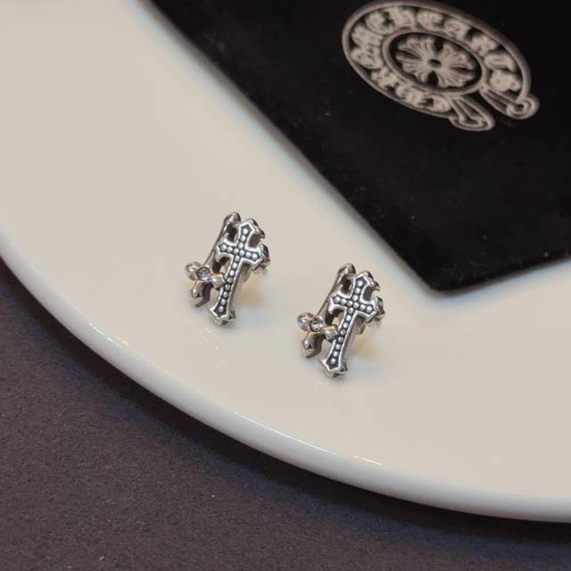 New boutique quality Chrome Hearts classic retro cross earrings. The embossed design and different patterns create a unique look. The cross and scout flower are Chrome Hearts' signature elements, making them timeless. Authentic Chrome Hearts replicas, different from ordinary versions on the market. High-quality replicas, look at the details of the lettering and the vintage distressed finish. Exquisite craftsmanship! Handmade! Authentic mold, trendy and fashionable, suitable for both men and women, couples, official website original, rock punk Thai silver style, retro elements, trendy and versatile!