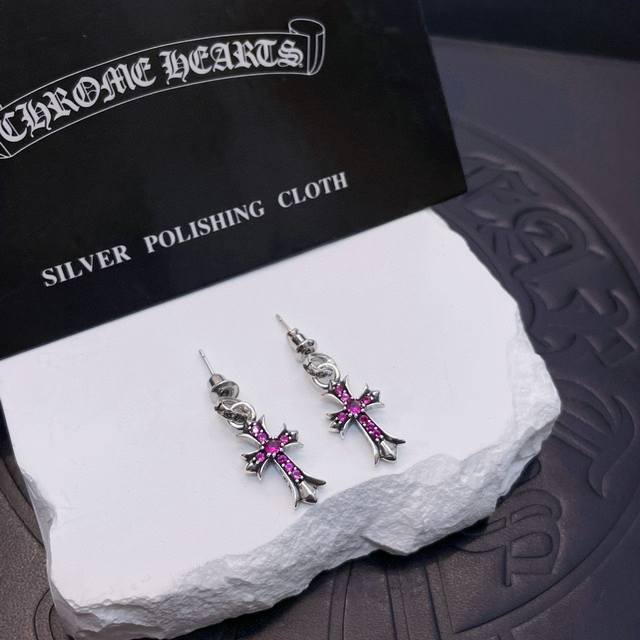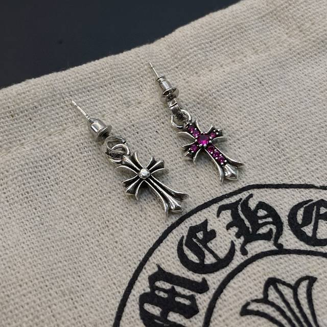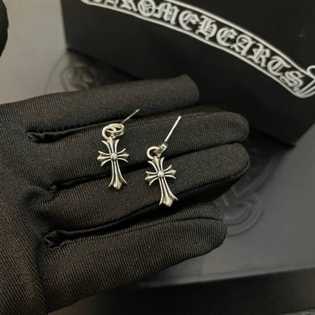New boutique quality Chrome Hearts classic retro cross earrings. The embossed design and different patterns create a unique look. The cross and scout emblem are Chrome Hearts' signature, making them timeless. Authentic Chrome Hearts replicas, different from ordinary versions on the market. High-quality replicas, check the details of the lettering and printing. Vintage distressed finish, high-quality ash. Handcrafted! Authentic mold, trendy and fashionable, suitable for both men and women, couples. Official website original, rock punk Thai silver style, retro elements, trendy and versatile!
