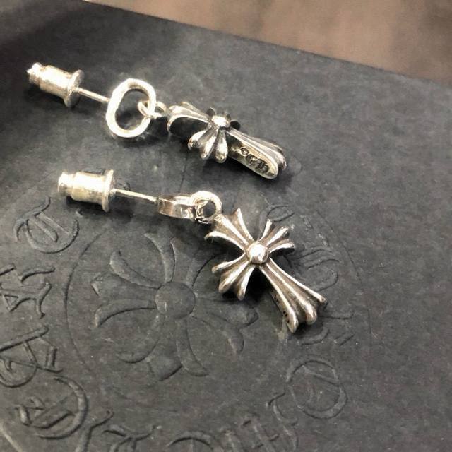 New boutique quality Chrome Hearts classic retro cross earrings. The embossed design and different patterns create a unique look. The cross and scout flower are Chrome Hearts' signature colors, making them timeless. Authentic Chrome Hearts necklace, different from ordinary versions on the market. High-quality replicas, check the details of the lettering and the vintage distressed finish. Exquisite craftsmanship! Handmade! Authentic mold, trendy and fashionable, suitable for both men and women, couples, official website original, rock punk Thai silver style, retro elements, trendy and versatile!