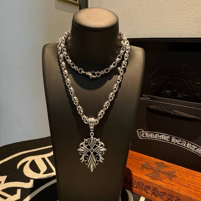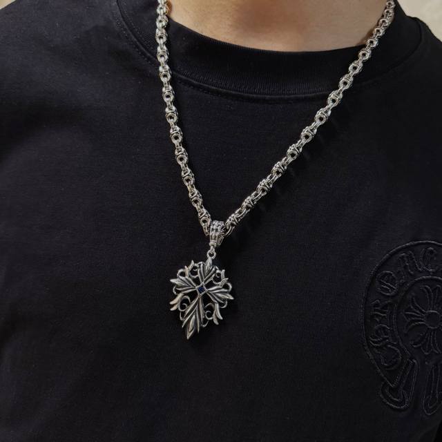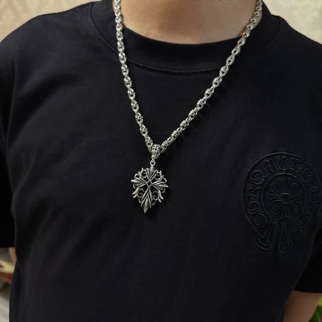 New boutique quality Chrome Hearts classic retro cross flower ball necklace with vine flower cross pendant. The embossed design and different patterns create a unique look. The cross and scout flower are Chrome Hearts' signature elements, making them timeless. Authentic Chrome Hearts replica, different from ordinary versions on the market. High-quality replica with detailed lettering and vintage distressing. Exquisite craftsmanship! Handmade! Authentic mold, trendy and fashionable, suitable for both men and women, couples. Official website original, rock punk Thai silver style, retro elements, trendy and versatile!