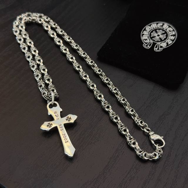 New boutique quality Chrome Hearts classic retro cross necklace. The skull cross pendant features an embossed design with different patterns, presenting a unique style. The cross and scout flower are the hallmarks of Chrome Hearts, making them timeless. Authentic Chrome Hearts replica, distinguishing it from ordinary market versions. Quality is guaranteed; look at the details of the lettering and the vintage distressed finish. Exquisite craftsmanship! Handmade! Authentic mold, trendy and fashionable, a must-have for men and women, suitable for couples. Official website original, rock punk Thai silver style, retro elements, trendy and versatile!
