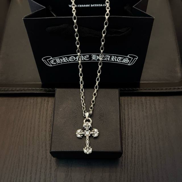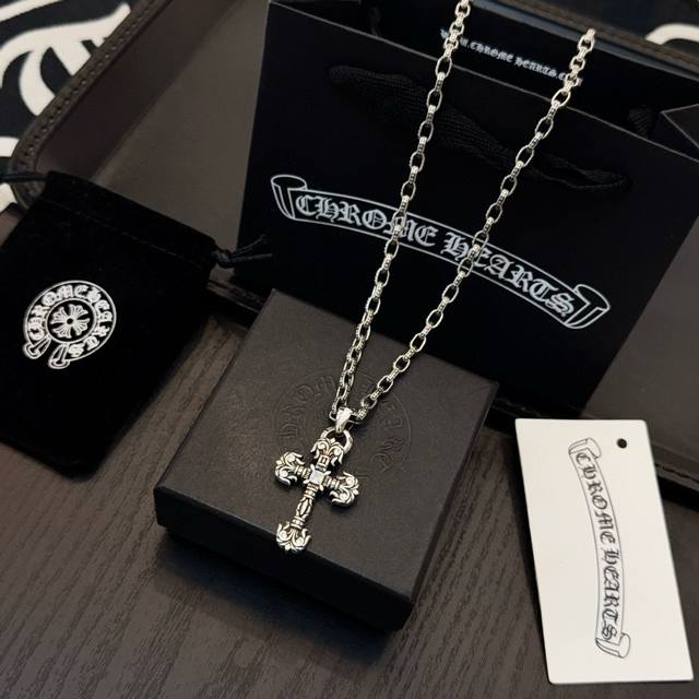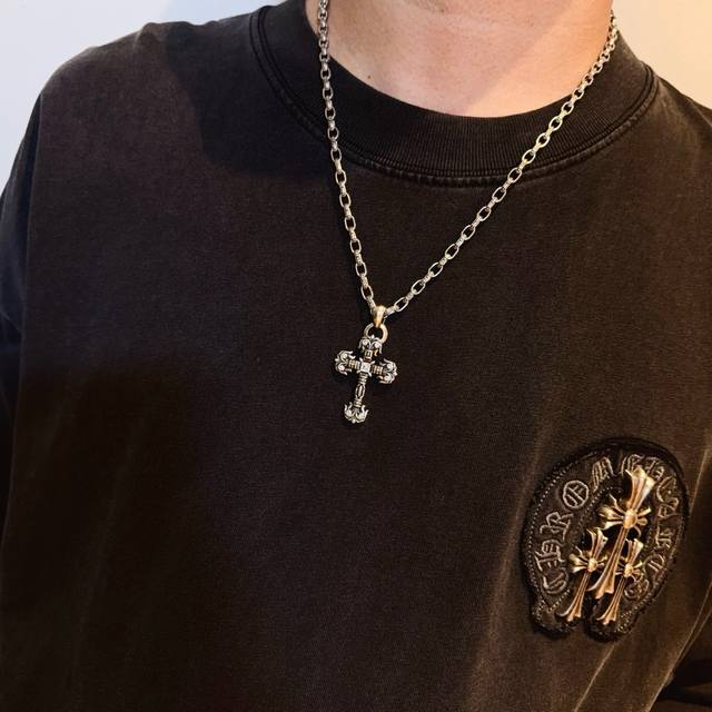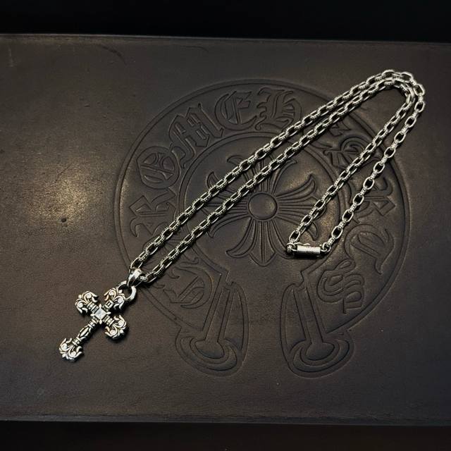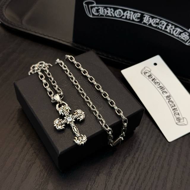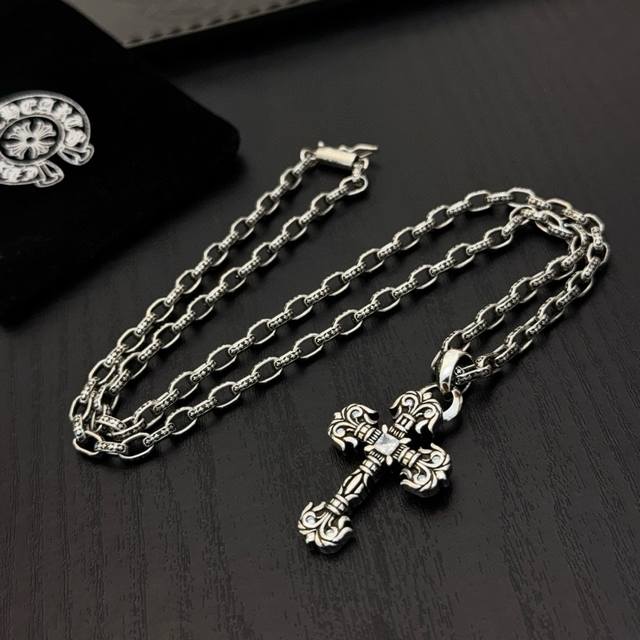New boutique quality Chrome Hearts classic retro cross necklace with flame cross pendant. The embossed design and different patterns create a unique look. The cross and scout flower are the hallmarks of Chrome Hearts, making them timeless. Authentic Chrome Hearts replica, distinguishing it from ordinary versions on the market. Quality is top-notch, look at the details of the lettering and the vintage distressed finish. Exquisite craftsmanship! Purely handmade