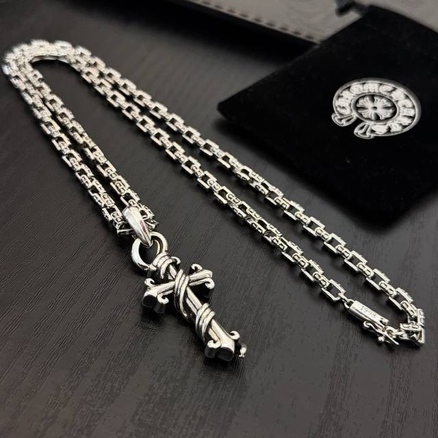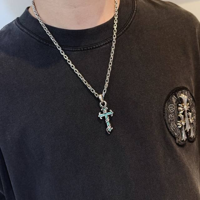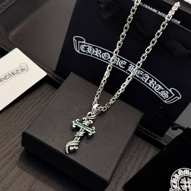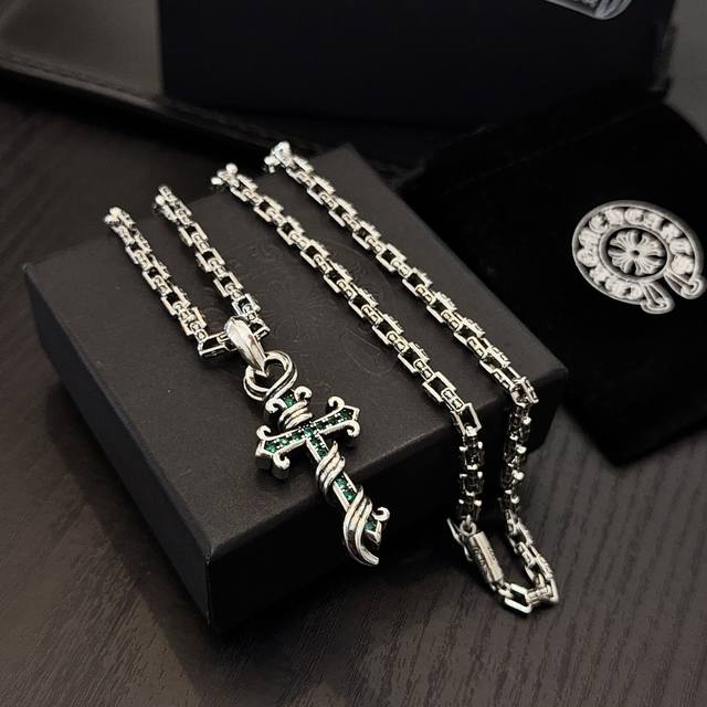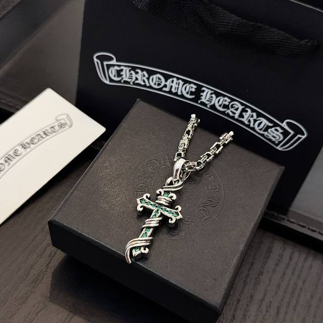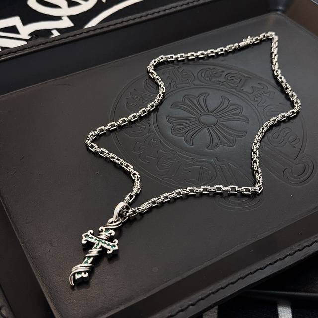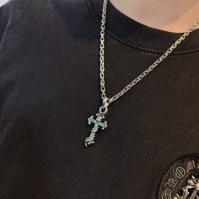 New boutique quality Chrome Hearts classic retro cross necklace with green diamond cross pendant. The embossed design and different patterns create a unique look. The cross and scout flower are Chrome Hearts' signature elements, making them timeless. Authentic Chrome Hearts replica, different from ordinary versions on the market. High-quality replica, check the details of the lettering and the vintage distressed finish. Exquisite craftsmanship! Handmade! Authentic mold, trendy and fashionable, a must-have for men and women, suitable for couples. Official website original, rock punk Thai silver style, retro elements, trendy and versatile!