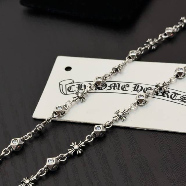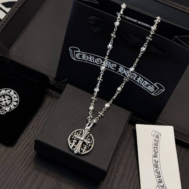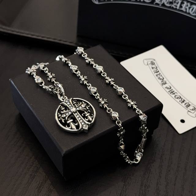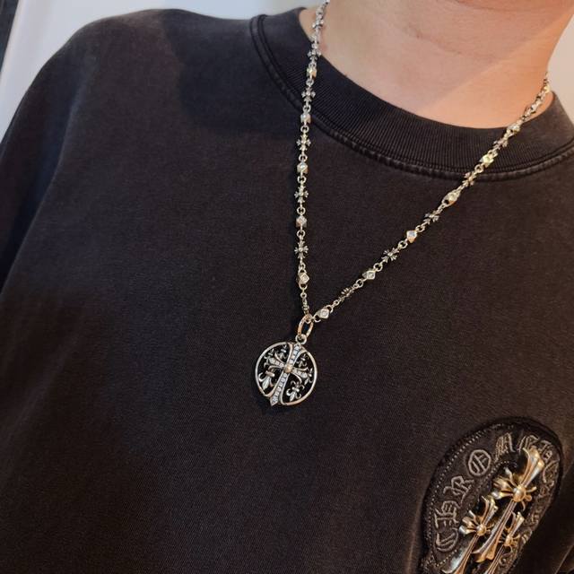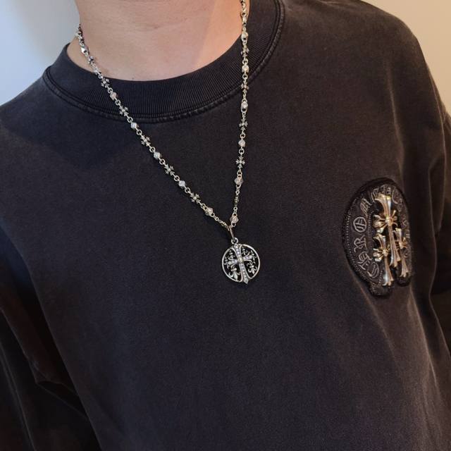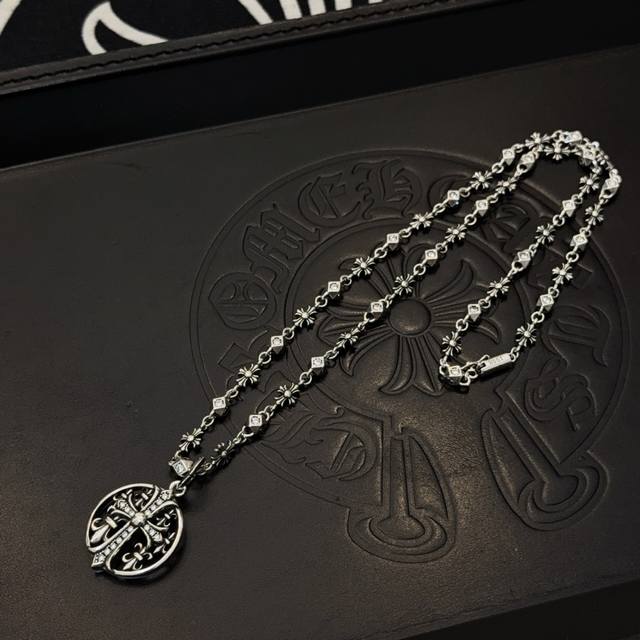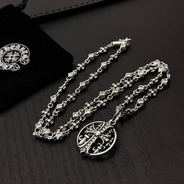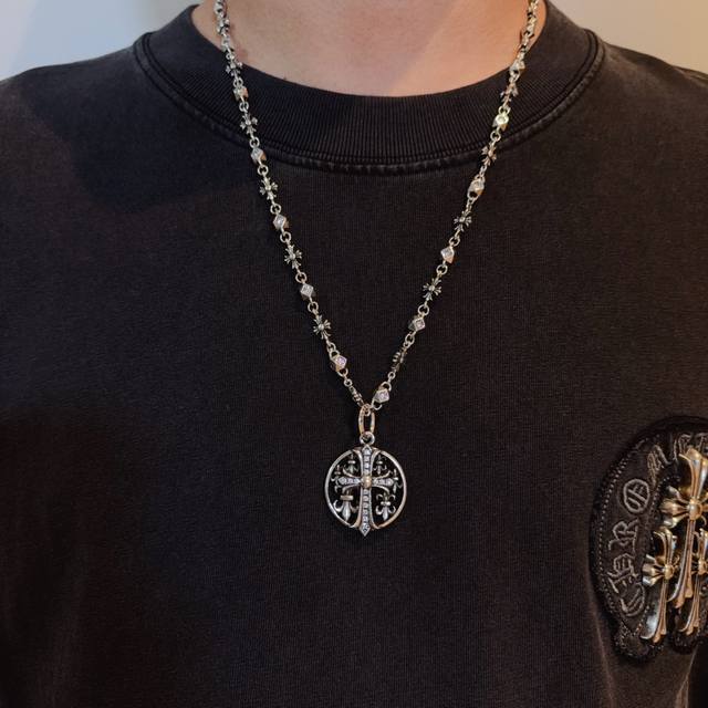 New boutique quality Chrome Hearts classic retro diamond necklace with full diamond ring and cross pendant. The embossed design and different patterns create a unique look. The cross and scout flower are Chrome Hearts' signature colors, making them timeless. Authentic Chrome Hearts replica, different from ordinary versions on the market. Quality is top-notch, look at the details of the lettering and the vintage distressed finish. Exquisite craftsmanship! Purely handmade