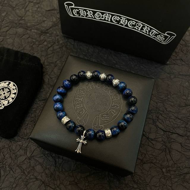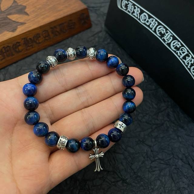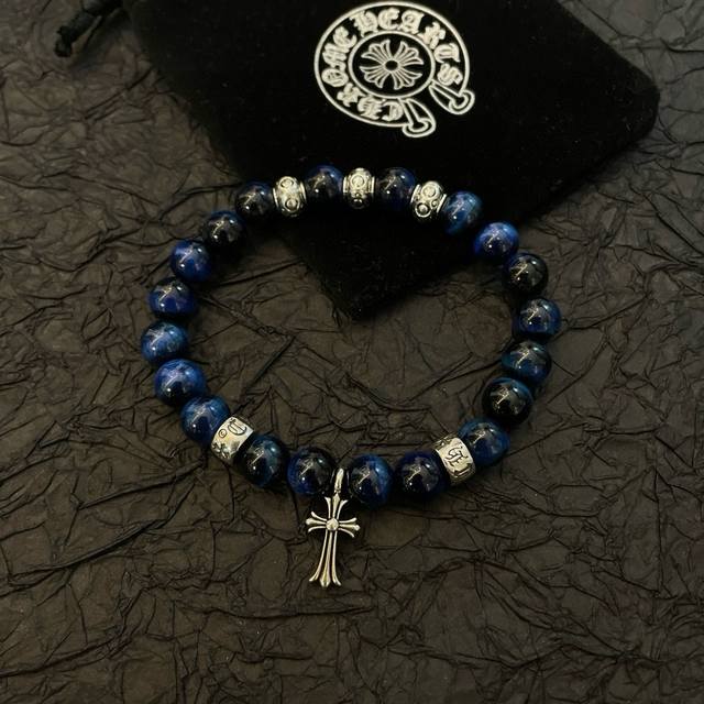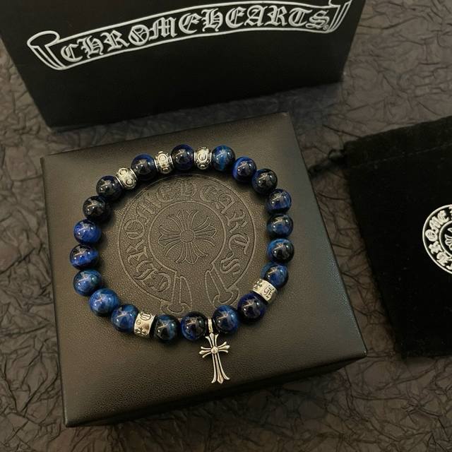 New boutique quality Chrome Hearts classic retro multi-element blue lapis lazuli bracelet. The different textured patterns create a unique style. The cross and scout flower are Chrome Hearts' signature elements, making them timeless. Authentic Chrome Hearts replica, different from ordinary versions on the market. Quality is comparable to the original, judging by the details of the lettering and the vintage, aged finish. Exquisite craftsmanship! Purely handmade