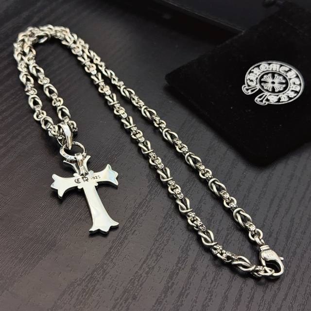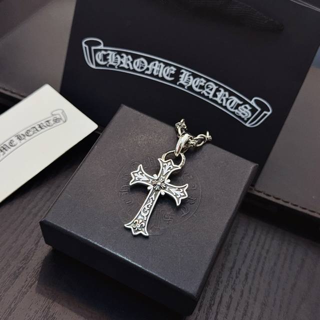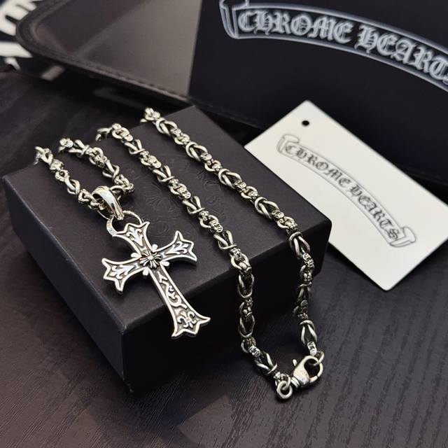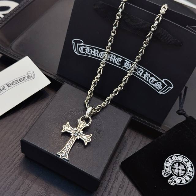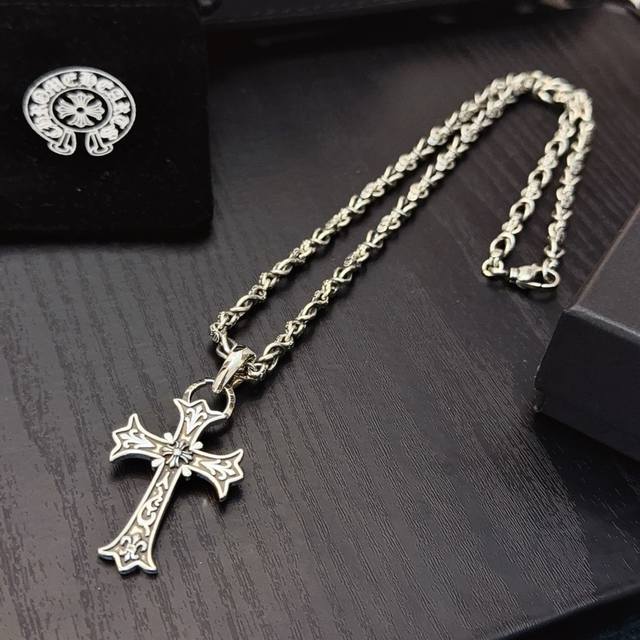 New boutique quality Chrome Hearts classic retro multi-element cross necklace. The cross pendant features an embossed design with different patterns, presenting a unique style. The cross and scout flower are the hallmarks of Chrome Hearts, making them timeless. Authentic Chrome Hearts replica, distinguishing it from ordinary market versions. Quality is guaranteed; look at the details of the lettering and the vintage distressed finish. Exquisite craftsmanship! Handmade! Authentic mold, trendy and fashionable, a must-have for men and women, suitable for couples. Official website original, rock punk Thai silver style, retro elements, trendy and versatile!