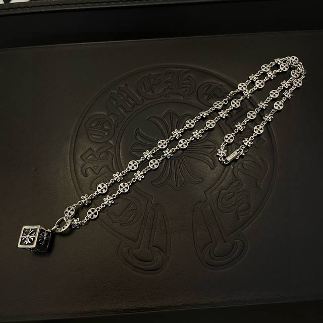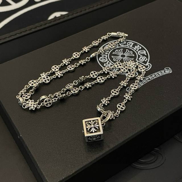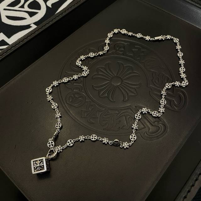 New boutique quality Chrome Hearts classic retro multi-element necklace with cross flower dice pendant. Popular on Kuaishou, Ins, and Xiaohongshu. The embossed design and different patterns create a unique look. The cross and scout flower are Chrome Hearts' signature elements, making them timeless. Authentic Chrome Hearts replica, different from ordinary versions on the market. High-quality replica with detailed lettering and vintage finish. Exquisite craftsmanship! Handmade! Authentic mold, trendy and fashionable, suitable for both men and women, couples. Official website original, rock punk Thai silver style, retro elements, trendy and versatile!