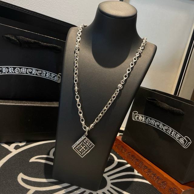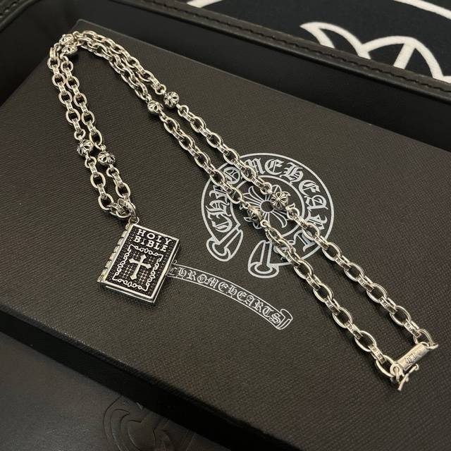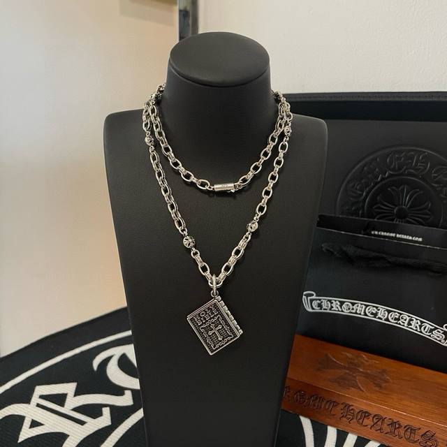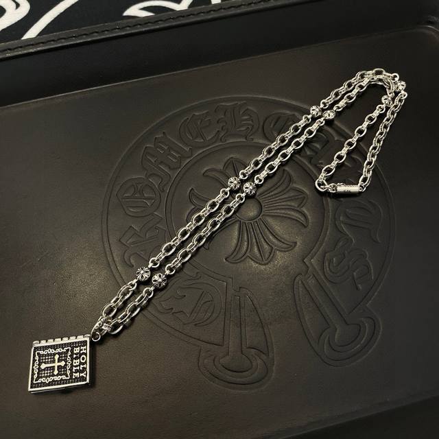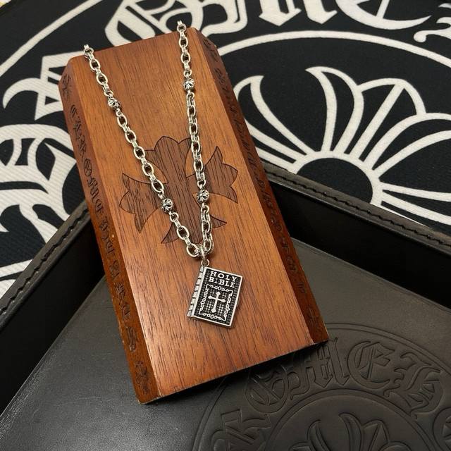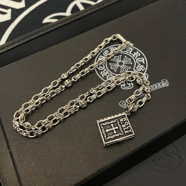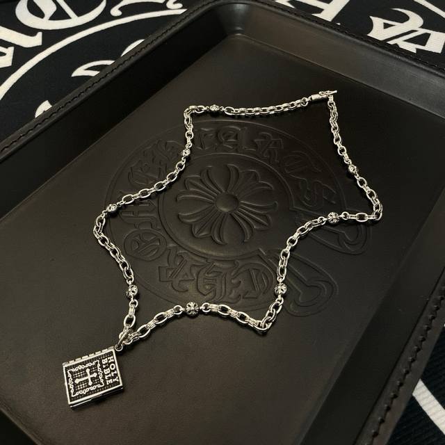 New boutique quality Chrome Hearts classic retro multi-element necklace with cross and book pendant. The embossed design and different patterns create a unique look. The cross and scout flower are Chrome Hearts' signature elements, making them timeless. Authentic Chrome Hearts replica, different from ordinary versions on the market. High-quality replica with detailed lettering and vintage distressing. Exquisite craftsmanship! Handmade! Authentic mold, trendy and fashionable, suitable for both men and women, couples. Official website original, rock punk Thai silver style, retro elements, trendy and versatile!