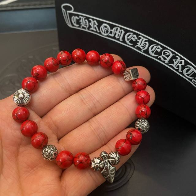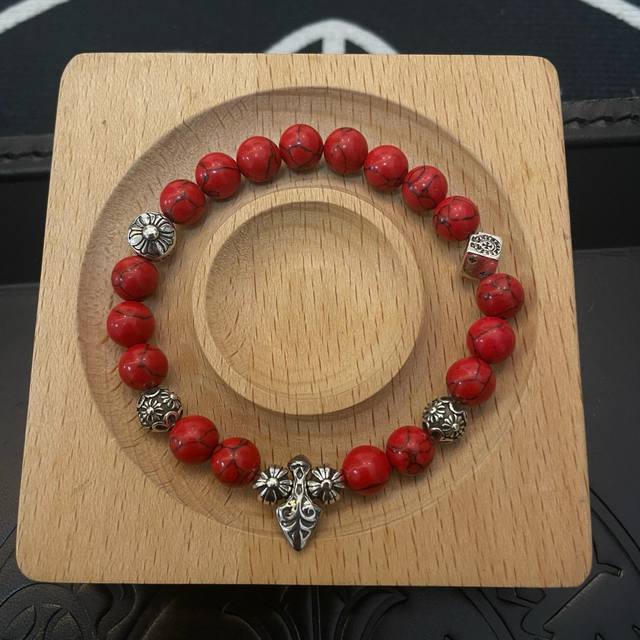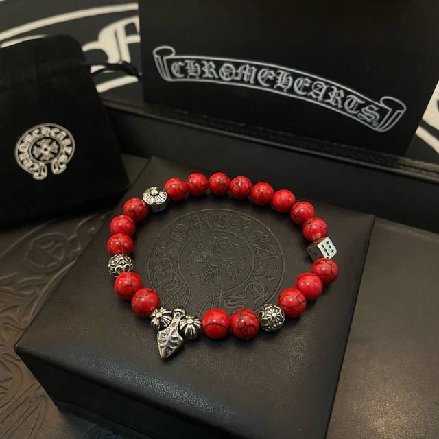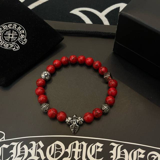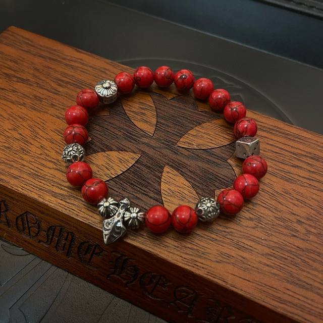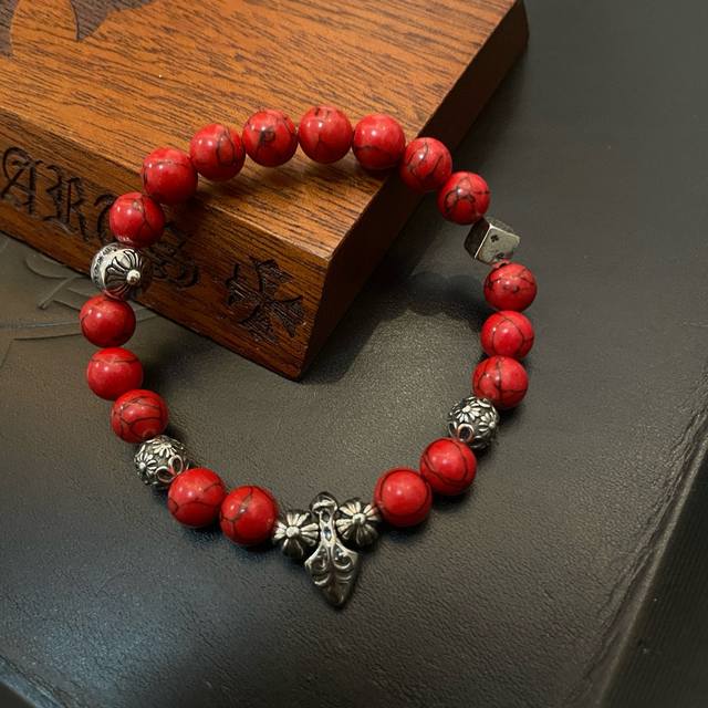 New boutique quality Chrome Hearts classic retro multi-element red turquoise bracelet, popular on Kuaishou, Instagram, and Xiaohongshu. The embossed design with different patterns presents a unique style. The cross and scout flower are Chrome Hearts' signature colors, making them timeless. Authentic Chrome Hearts replica, distinguished from ordinary market versions. Quality is comparable to the original, judging by the details of the lettering, the vintage distressed finish, and the degree of gray oxide. Exquisite craftsmanship!
