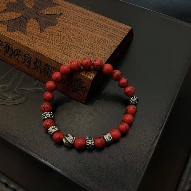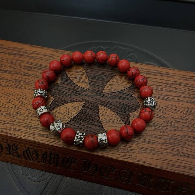 New boutique quality Chrome Hearts classic retro multi-element red turquoise bracelet, popular on Kuaishou, Instagram, and Xiaohongshu. The embossed design with different patterns presents a unique style. The cross and scout flower are Chrome Hearts ' signature colors , making them timeless. Authentic Chrome Hearts replica, distinguished from ordinary market versions. Quality is comparable to the original, judging by the details of the lettering, vintage finish, and the degree of gray oxide. Exquisite craftsmanship!