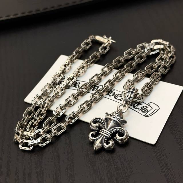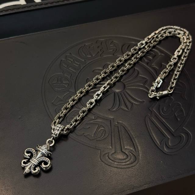 New boutique quality Chrome Hearts classic retro multi-element skull and cross necklace, full diamond thirty cross pendant, embossed design with different patterns, presenting a unique style. The cross and scout flower are the symbol of Chrome Hearts, making them timeless. Authentic Chrome Hearts replica, different from ordinary light versions on the market. Quality is comparable to the original, look at the details of the lettering, the vintage distressed finish, and the gray oxide level. Exquisite craftsmanship! Purely handmade~ Authentic mold, trendy and fashionable, a must-have for men and women, suitable for couples. Official website original, rock punk Thai silver style, retro elements, trendy and versatile!