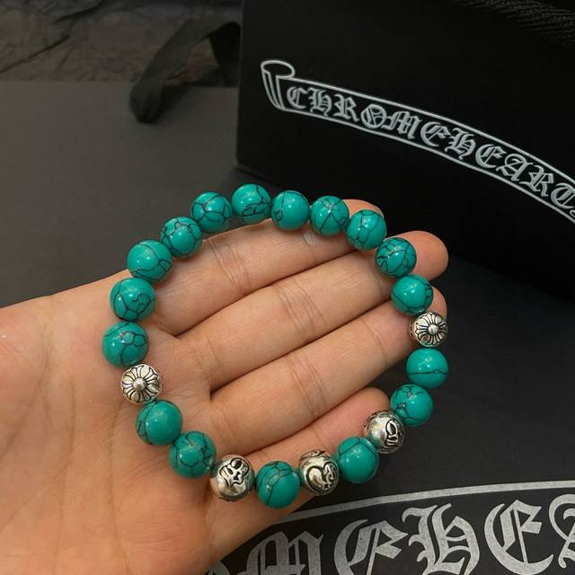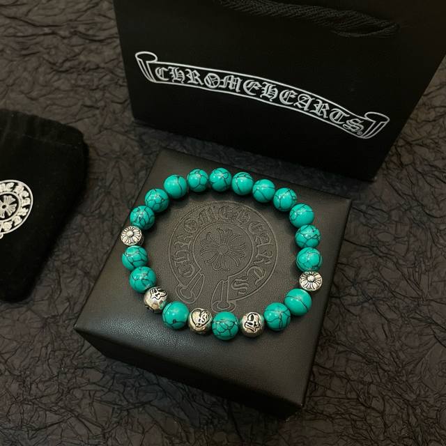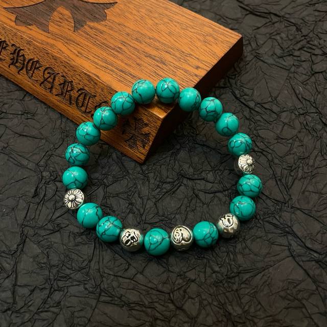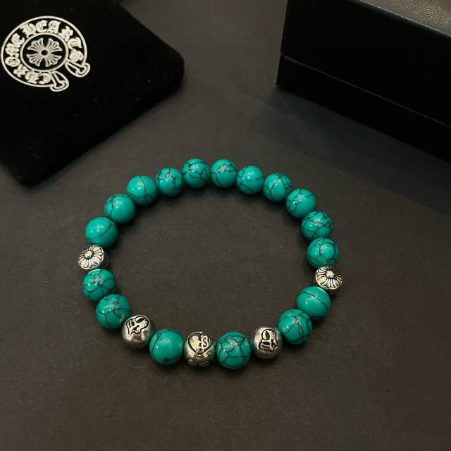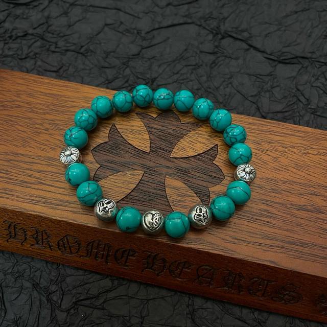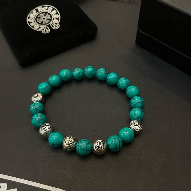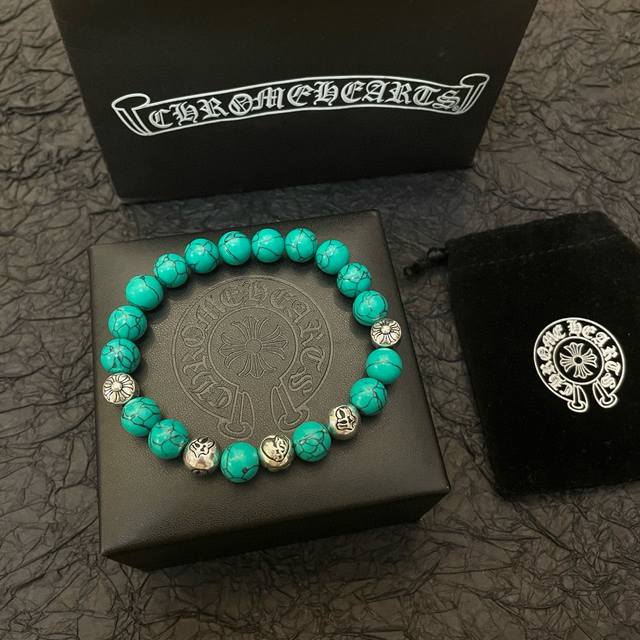 New boutique quality Chrome Hearts classic retro multi-element turquoise bracelet/bracelet. The embossed design with different patterns presents a unique style. The cross and scout flower are Chrome Hearts' iconic symbol, making it timeless. Authentic Chrome Hearts replica, different from ordinary versions on the market. Quality is comparable to the original, judging by the details of the lettering and the vintage, aged finish. Exquisite craftsmanship! Purely handmade