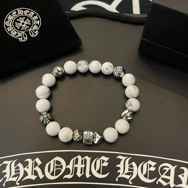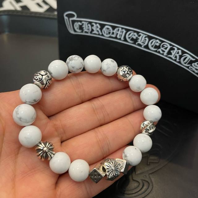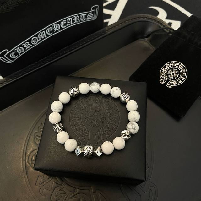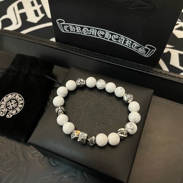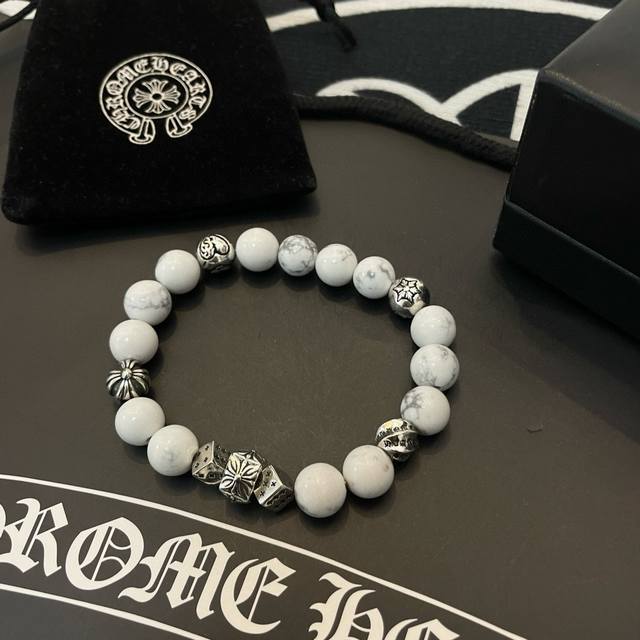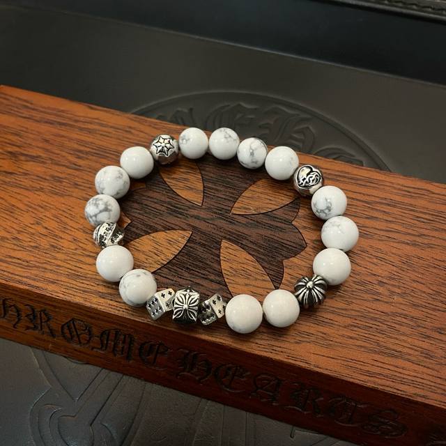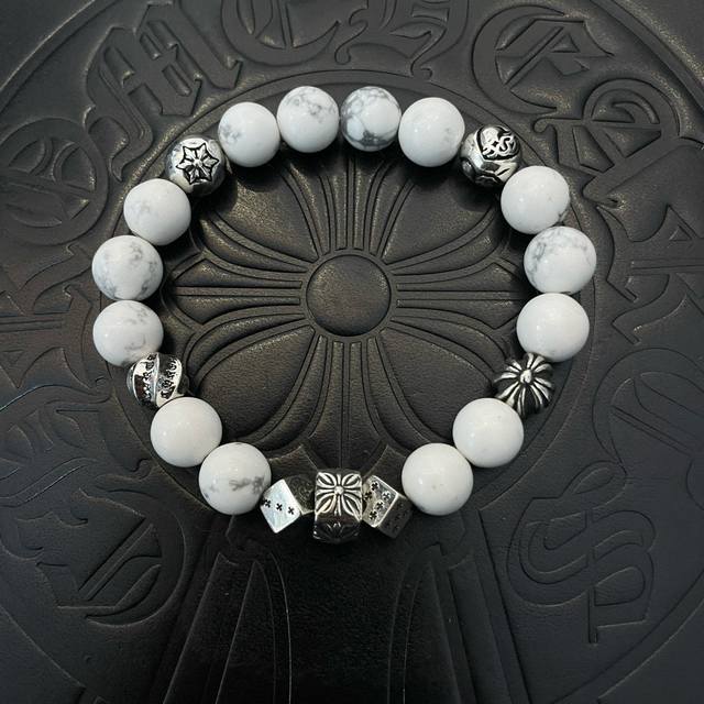New boutique quality Chrome Hearts classic retro multi-element white turquoise bracelet, popular on Kuaishou, Instagram, and Xiaohongshu. The embossed design with different patterns presents a unique style. The cross and scout flower are Chrome Hearts' signature colors, making them timeless. Authentic Chrome Hearts replica, different from ordinary versions on the market. Quality is comparable to the original, judging by the details of the lettering, the vintage distressed finish, and the degree of gray oxide. Exquisite craftsmanship!