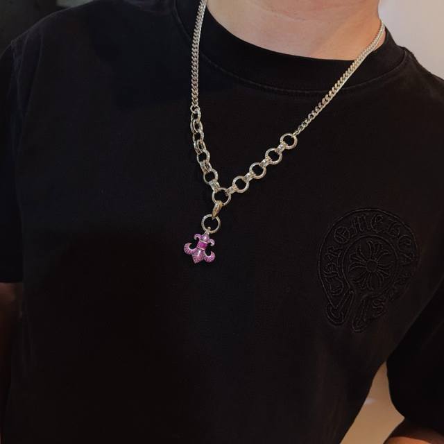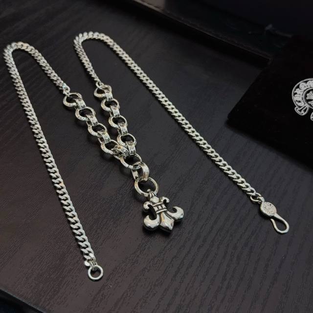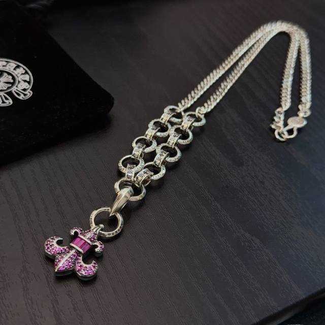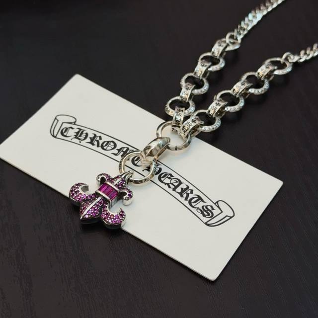 New boutique quality Chrome Hearts classic retro necklace, pink diamond scout flower pendant with embossed design and different patterns, presenting a unique style. The cross and scout flower are the symbol of Chrome Hearts, making them timeless. Authentic Chrome Hearts replica, different from ordinary light versions on the market. Quality is comparable to the original, look at the details of the lettering and the vintage distressed finish. Exquisite craftsmanship! Purely handmade~ Authentic mold, trendy and fashionable, a must-have for men and women, suitable for couples. Official website original, rock punk Thai silver style, retro elements, trendy and versatile!