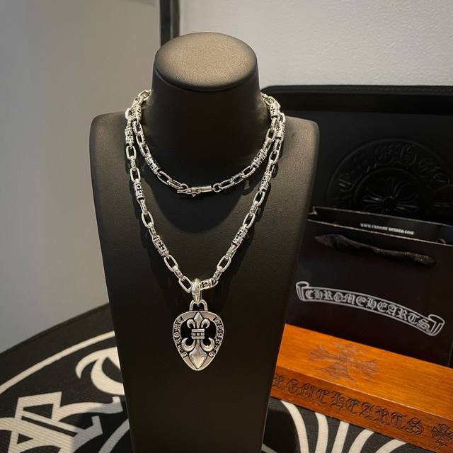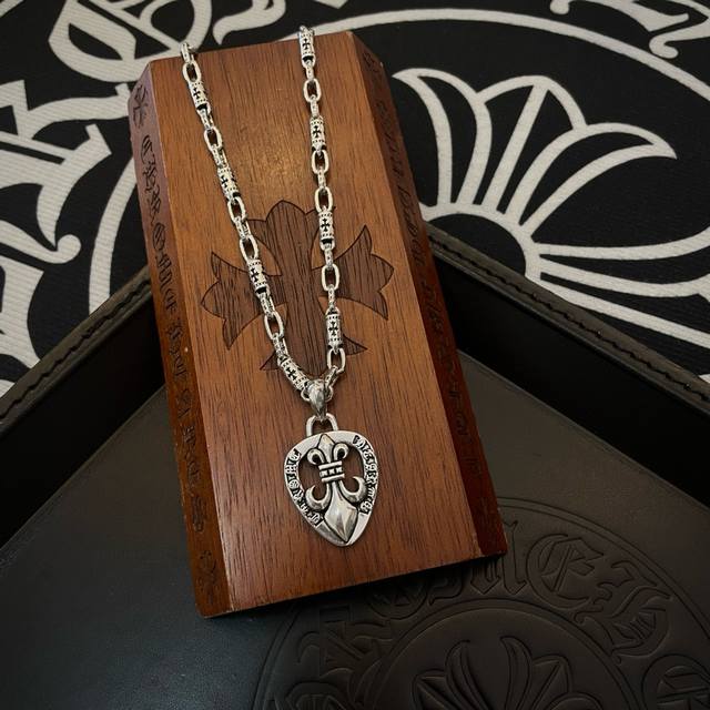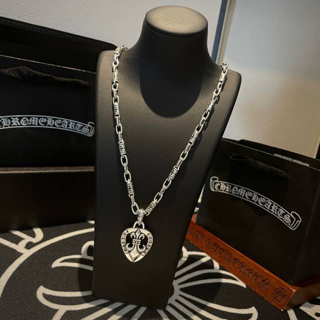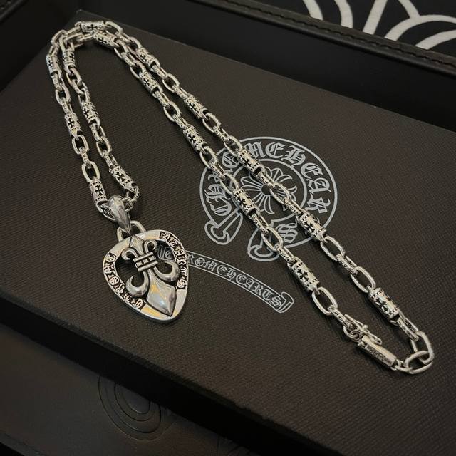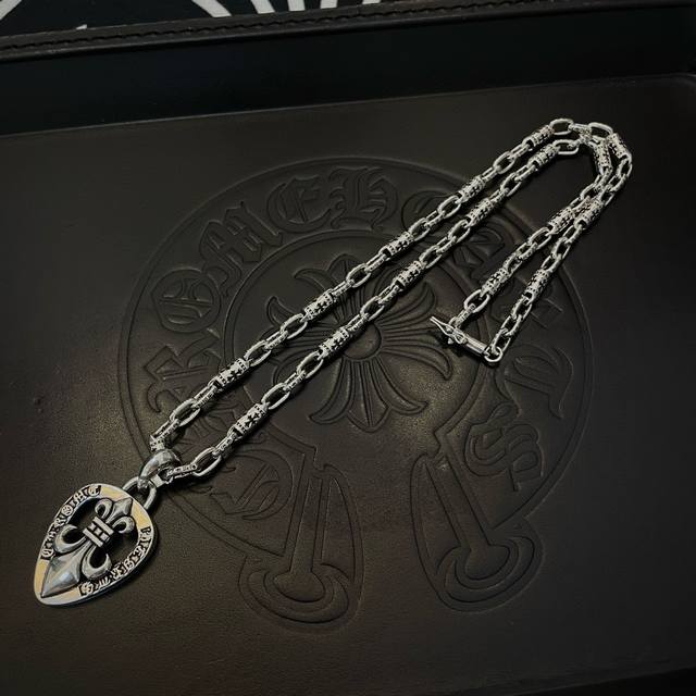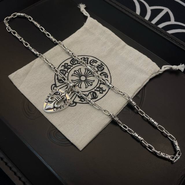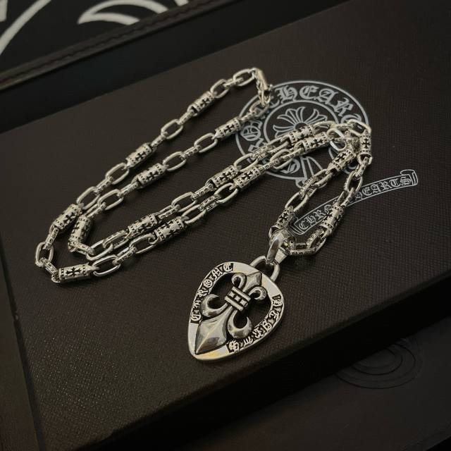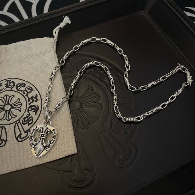 New boutique quality Chrome Hearts classic retro necklace with heart-shaped scout flower pendant. The embossed design and different patterns create a unique look. The cross and scout flower are Chrome Hearts' signature elements, making them timeless. Authentic Chrome Hearts replica, different from ordinary versions on the market. High-quality replica with detailed lettering and vintage finish. Exquisite craftsmanship! Handmade! Authentic mold, trendy and fashionable, suitable for both men and women, couples. Official website original, rock punk Thai silver style, retro elements, trendy and versatile!