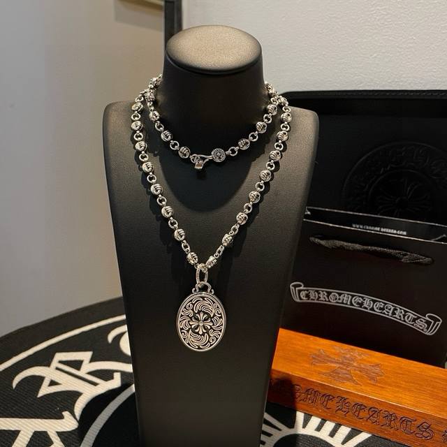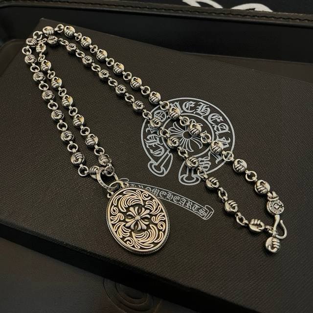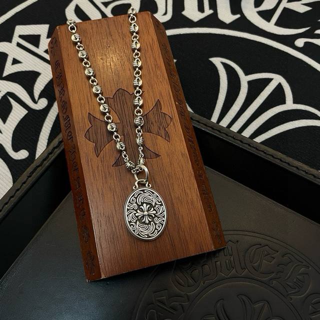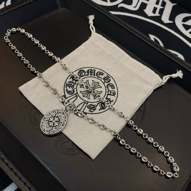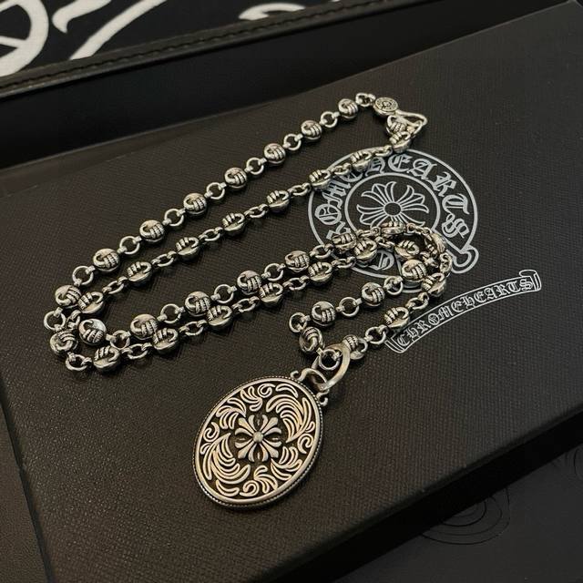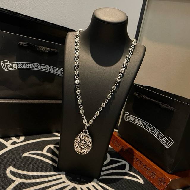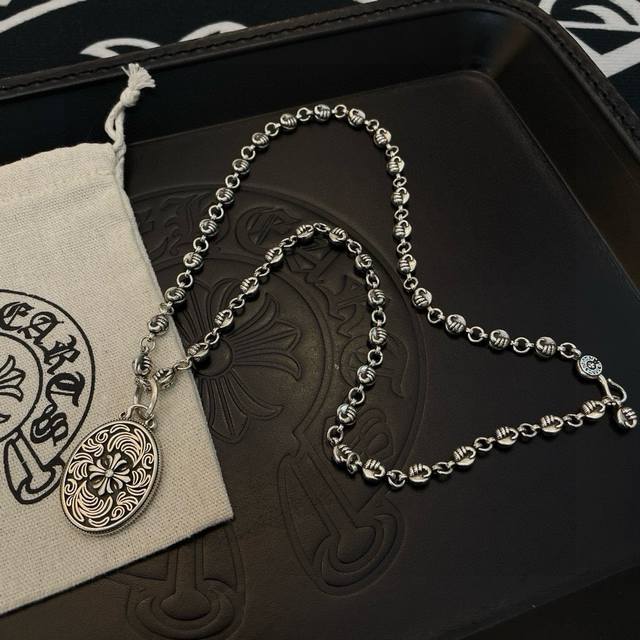 New boutique quality Chrome Hearts classic retro necklace with oval vine cross flower pendant. The embossed design and different patterns create a unique look. The cross and scout flower are Chrome Hearts' signature colors, making them timeless. Authentic Chrome Hearts replica, different from ordinary versions on the market. High-quality replica, check the details of the lettering and printing. Vintage distressed finish with a high degree of gray oxide. Exquisite craftsmanship! Purely handmade. Authentic mold, trendy and fashionable, a must-have for men and women, suitable for couples. Official website original, rock punk Thai silver style, retro elements, trendy and versatile!