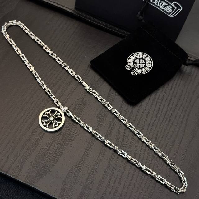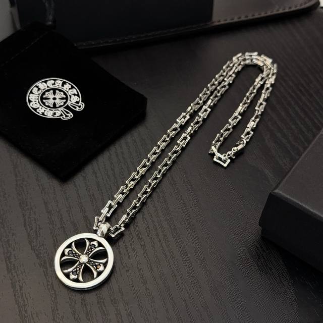 New boutique quality Chrome Hearts classic retro necklace with round cross pendant. The embossed design and different patterns create a unique look. The cross and scout flower are Chrome Hearts' signature elements, making it timeless. Authentic Chrome Hearts replica, different from ordinary versions on the market. Quality is top-notch, look at the details of the lettering and the vintage distressed finish. Exquisite craftsmanship! Handmade! Authentic mold, trendy and fashionable, a must-have for men and women, suitable for couples. Official website original, rock punk Thai silver style, retro elements, trendy and versatile!