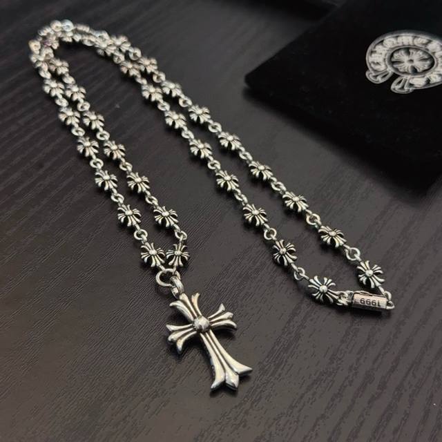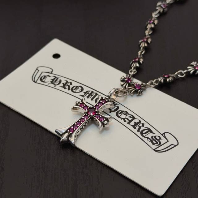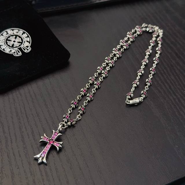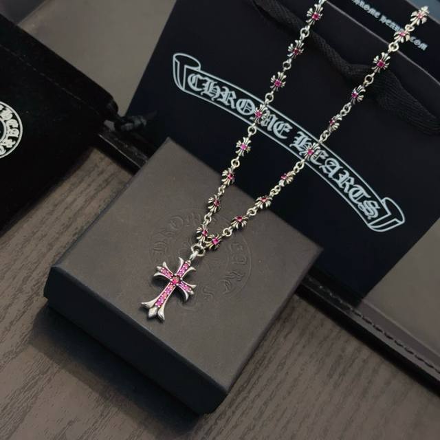 New boutique quality Chrome Hearts classic retro pink diamond cross integrated chain with embossed design and different patterns, presenting a unique style. The cross and scout flower are the symbol of Chrome Hearts, making them timeless. Authentic Chrome Hearts replica, different from ordinary light versions on the market. Quality is comparable to the original, look at the details of the lettering and the vintage distressed finish. Exquisite craftsmanship! Purely handmade~ Authentic mold, trendy and fashionable, a must-have for men and women, suitable for couples. Official website original, rock punk Thai silver style, retro elements, trendy and versatile! DDD