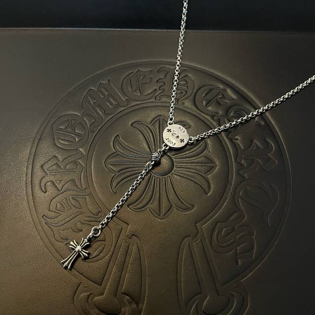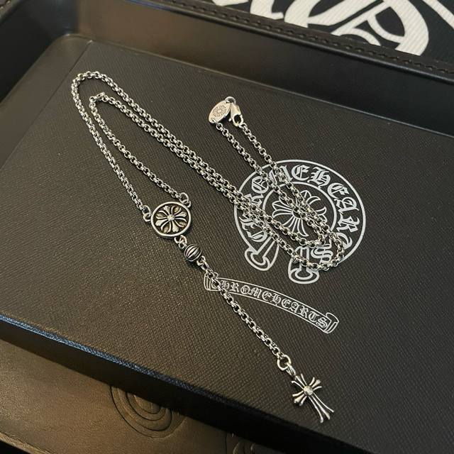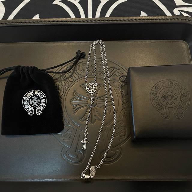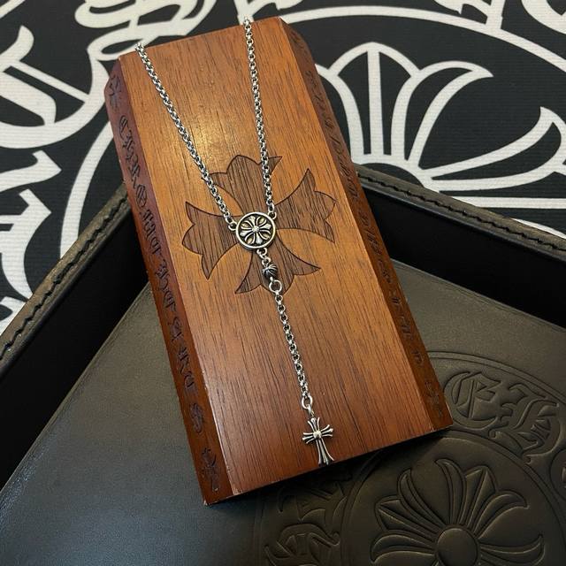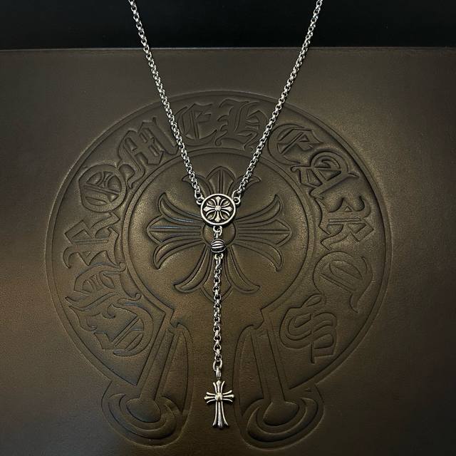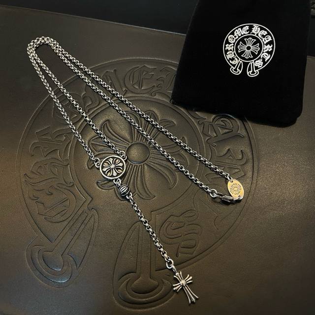New boutique quality Chrome Hearts classic retro round cross pearl necklace. The cross pendant features an embossed design with different patterns, presenting a unique style. The cross and scout flower are the symbol of Chrome Hearts, making it timeless. Authentic Chrome Hearts replica, different from ordinary light versions on the market. Quality is comparable to the original, judging by the details of the lettering and the vintage distressed finish. Exquisite craftsmanship! Purely handmade. Authentic mold, trendy and fashionable, a must-have for men and women, suitable for couples. Official website original, rock punk Thai silver style, retro elements, trendy and versatile!