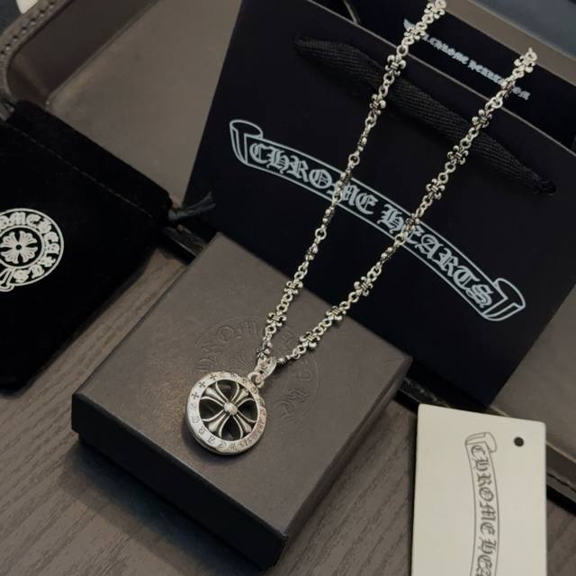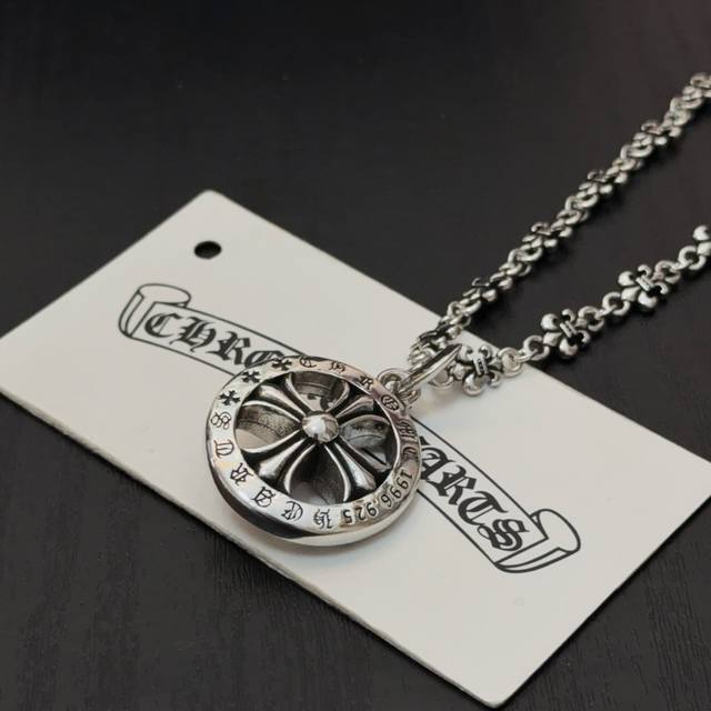 New boutique quality Chrome Hearts classic retro scout floral necklace with round cross pendant. The embossed design and different patterns create a unique look. The scout floral cross is Chrome Hearts' signature style, making it timeless. Authentic Chrome Hearts replica, different from ordinary versions on the market. High-quality replica with detailed lettering and vintage distressing. Exquisite craftsmanship! Handmade! Authentic mold, trendy and fashionable, suitable for both men and women, couples. Official website original, rock punk Thai silver style, retro elements, trendy and versatile!