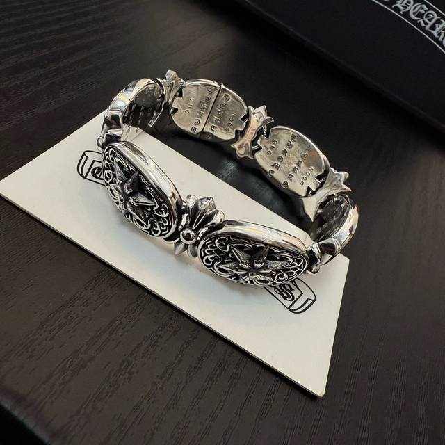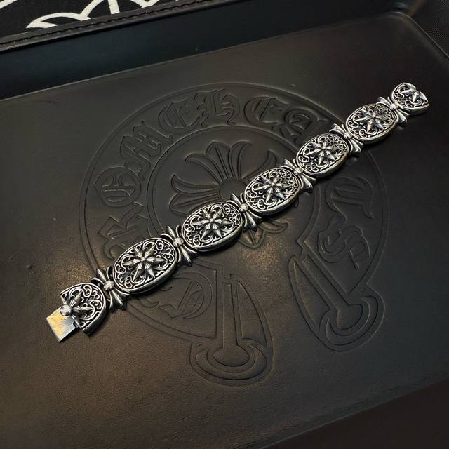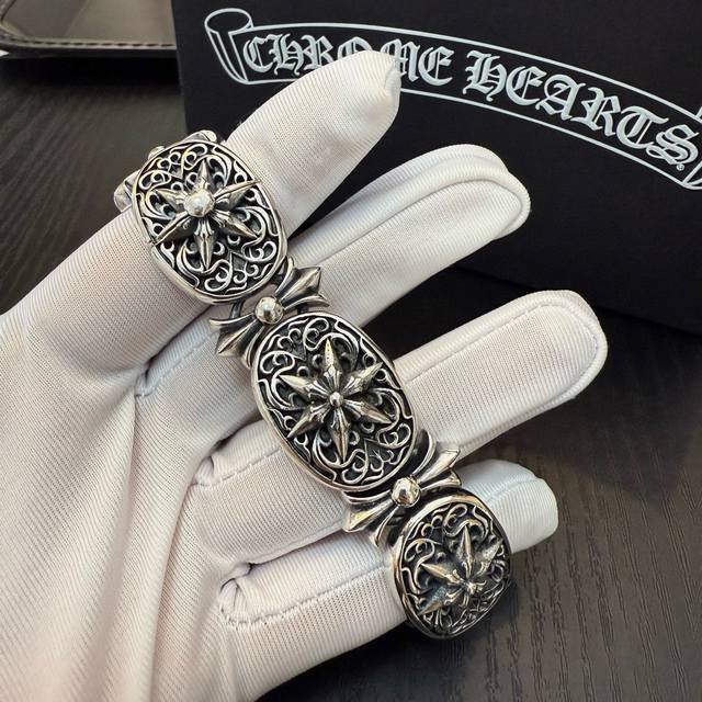 New boutique quality Chrome Hearts classic retro six-pointed star bracelet with embossed design and different patterns, presenting a unique style. The cross and scout flower are the symbols of Chrome Hearts, making them timeless. Authentic Chrome Hearts replica, different from ordinary light versions on the market. Quality is comparable to the original, look at the details of the lettering and the vintage distressed finish. Exquisite craftsmanship! Purely handmade~ Authentic mold, trendy and fashionable, a must-have for men and women, suitable for couples. Official website original, rock punk Thai silver style, retro elements, trendy and versatile! DDD