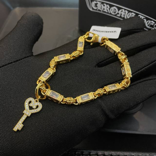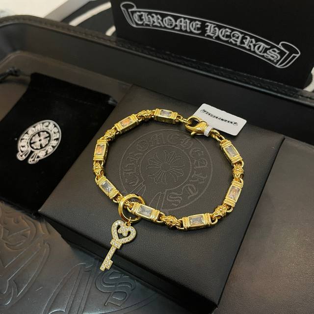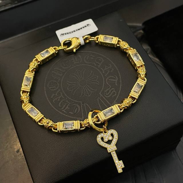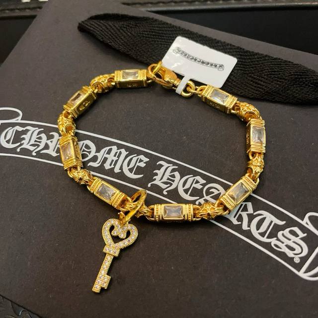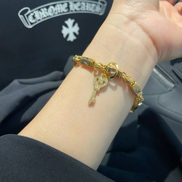 New boutique quality Chrome Hearts gold diamond-encrusted cross bracelet. The embossed design and various patterns create a unique look. The cross and scout flower are the hallmarks of Chrome Hearts, making them timeless. Authentic Chrome Hearts replica, distinguishing it from ordinary market versions. Quality is guaranteed; look at the details of the lettering and the vintage, distressed finish. Exquisite craftsmanship! Handmade! Authentic mold, trendy and fashionable, a must-have for men and women, suitable for couples. Official website original, rock punk Thai silver style, retro elements, trendy and versatile!