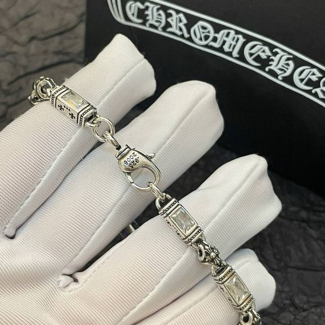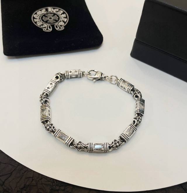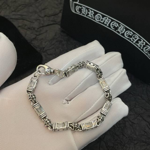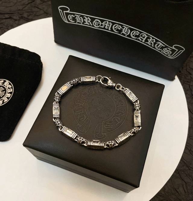 New boutique quality Chrome Hearts multi-element white diamond cross bracelet. The embossed design and different patterns create a unique look. The cross and scout flower are Chrome Hearts' signature colors, making them timeless. A genuine Chrome Hearts replica, distinguishing it from ordinary versions on the market. Quality is top-notch; look at the lettering details, the vintage distressed finish, and the degree of gray oxide. Exquisite craftsmanship!