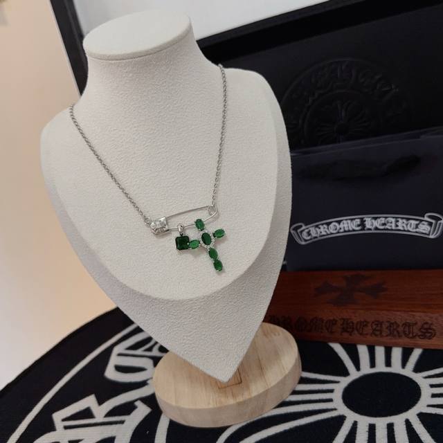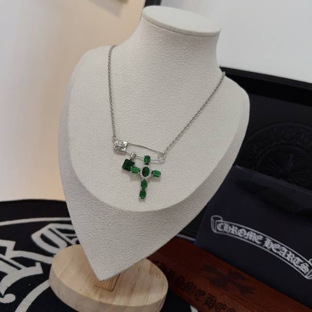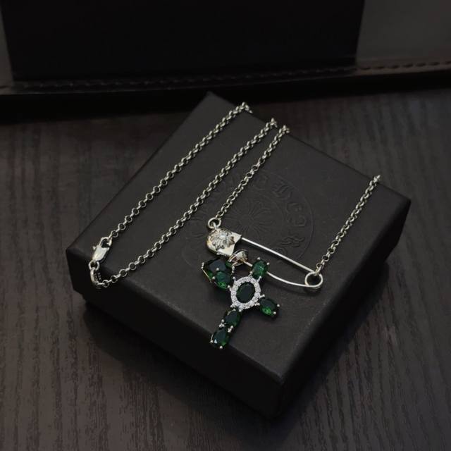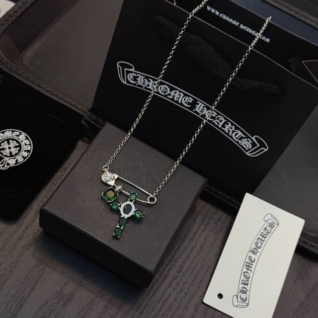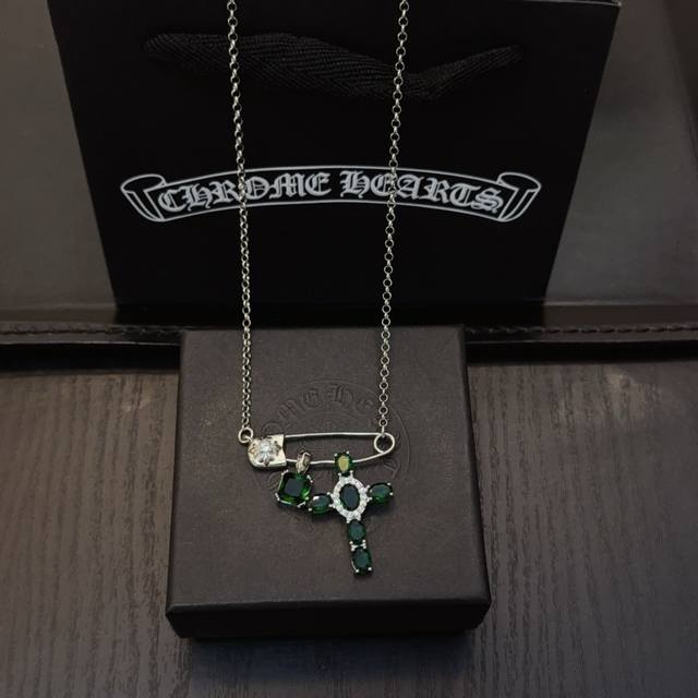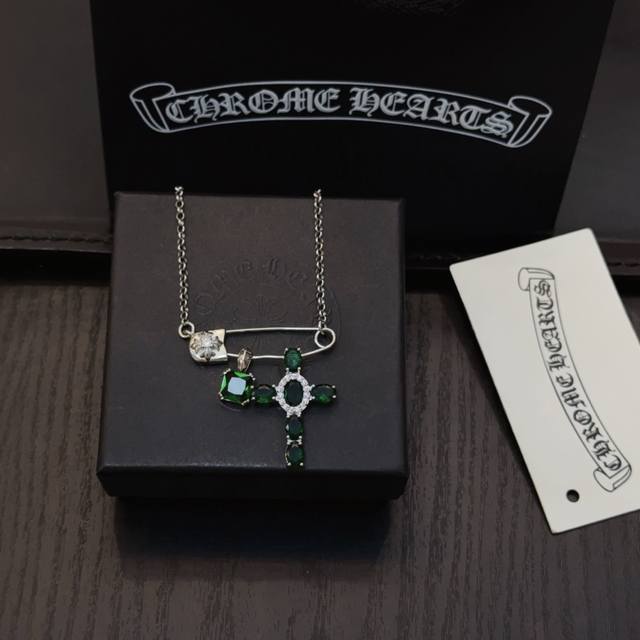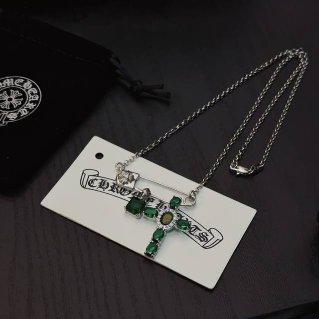 New counter quality Chrome Hearts Chrome Hearts brooch green diamond cross necklace with concave and convex shapes and different patterns and design styles, showing a unique cross. The Scout flower is the symbol of Chrome Hearts, so it is more enduring. The genuine version of Chrome Hearts is different from the ordinary light version on the market. The quality is compared with the version. Look at the printing details and the degree of retro and old gray oxygen. Seiko version!!! Purely handmade ~ authentic mold opening, trendy and fashionable, a must-have for men and women, can be worn by couples, the official website original rock punk Thai silver style, retro elements, trendy and versatile!